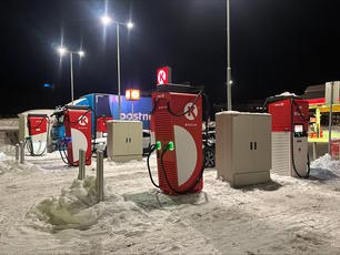 Stasjonsleder Grethe Nilsen avduker fire nye ladeplasser på stasjonen sin nord for Tromsø sentrum. – Her er det ladekø hele tiden, så dette kom i grevens tid, sier hun.