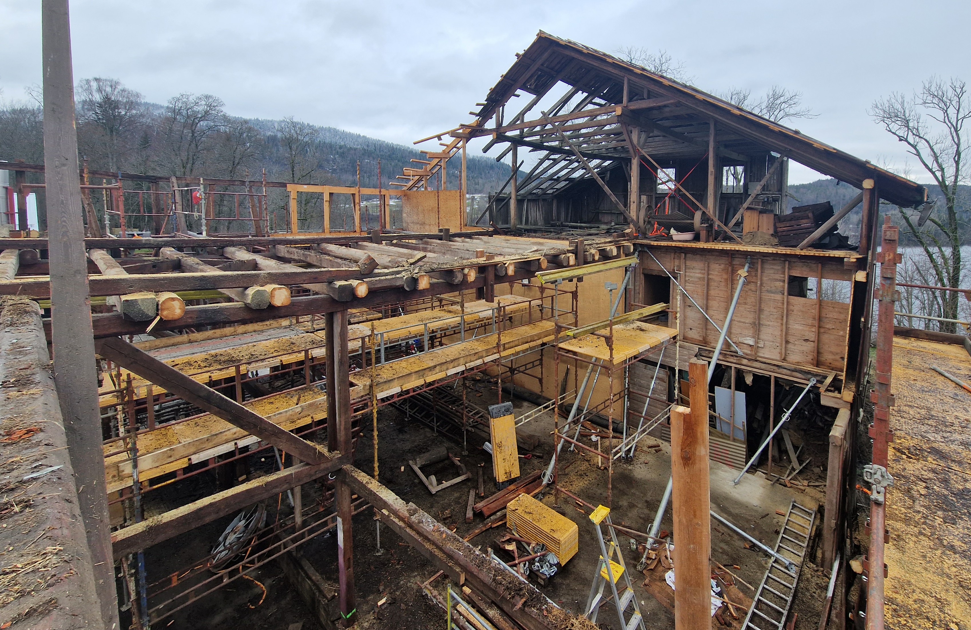 Arbeidet startet med en grundig kartlegging av materialene i den gamle låven. Tømmer, tegl, stein og panel ble registrert, demontert og lagret for videre bruk. Da bygget ble tatt ned vinteren 2022-23, skjedde det bit for bit for å sikre høy kvalitet på det som kunne gjenbrukes.