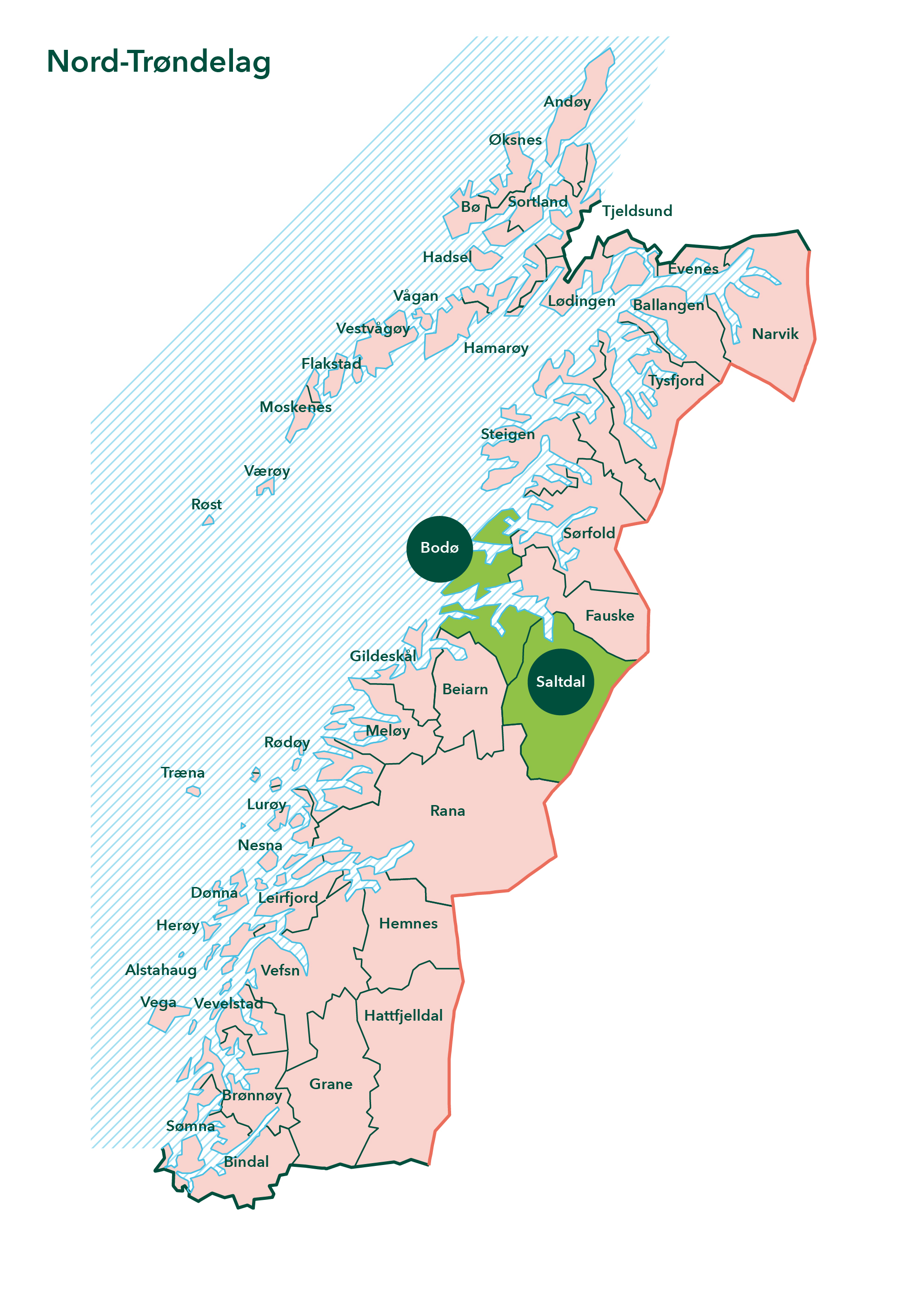 I Nordland er det kun Saltdal og Bodø kommune som er med i ordningen. Røst, Værøy, Moskenes, Flakstad, Vestvågøy, Vågan, Hadsel, Bø, Sortland, Øksnes, Andøy, Tjeldsund, Lødingen, Evenes, Narvik, Ballangen, Tysfjord, Hamarøy, Steigen, Sørfold, Fauske, Beiarn, Gildeskål, Meløy, Rana, Rødøy, Lurøy, Træna, Nesna, Leirfjord, Dønna, Hemnes, Vefsn, Alstahaug, Vega, Vevelstad, Grane, Hattfjelldal, Sømna og Bindal kommune har foreløpig valgt å stå utenfor.