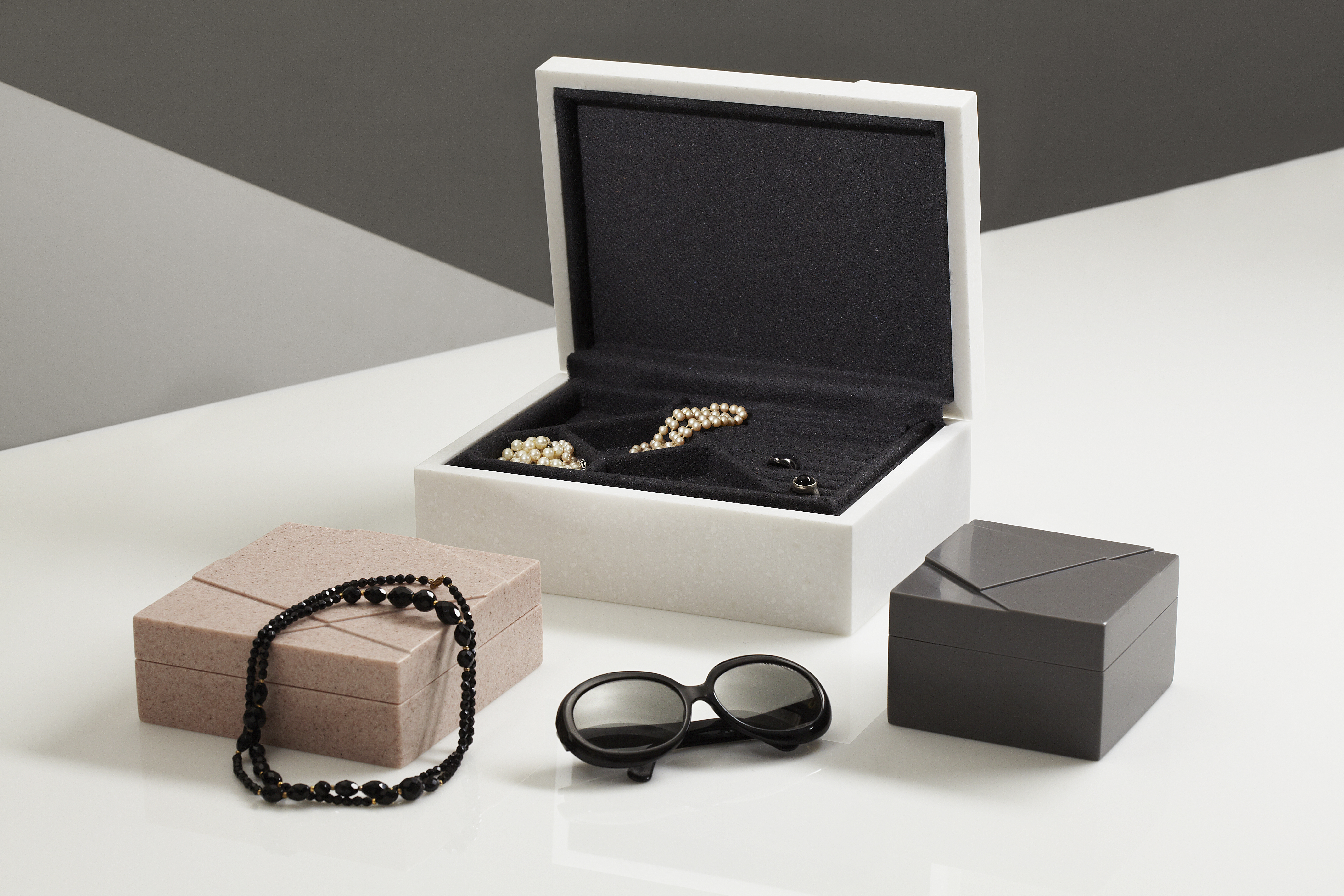 Tonje Skjervold fra Ås er både journalist og merkevarekonsulent, og har fått med seg et superlag for å designe Jewellerybox. Dette er et juvelskrin helt utenom det vanlige, der overdådig fløyel og lær er erstattet av corian og norsk ull.