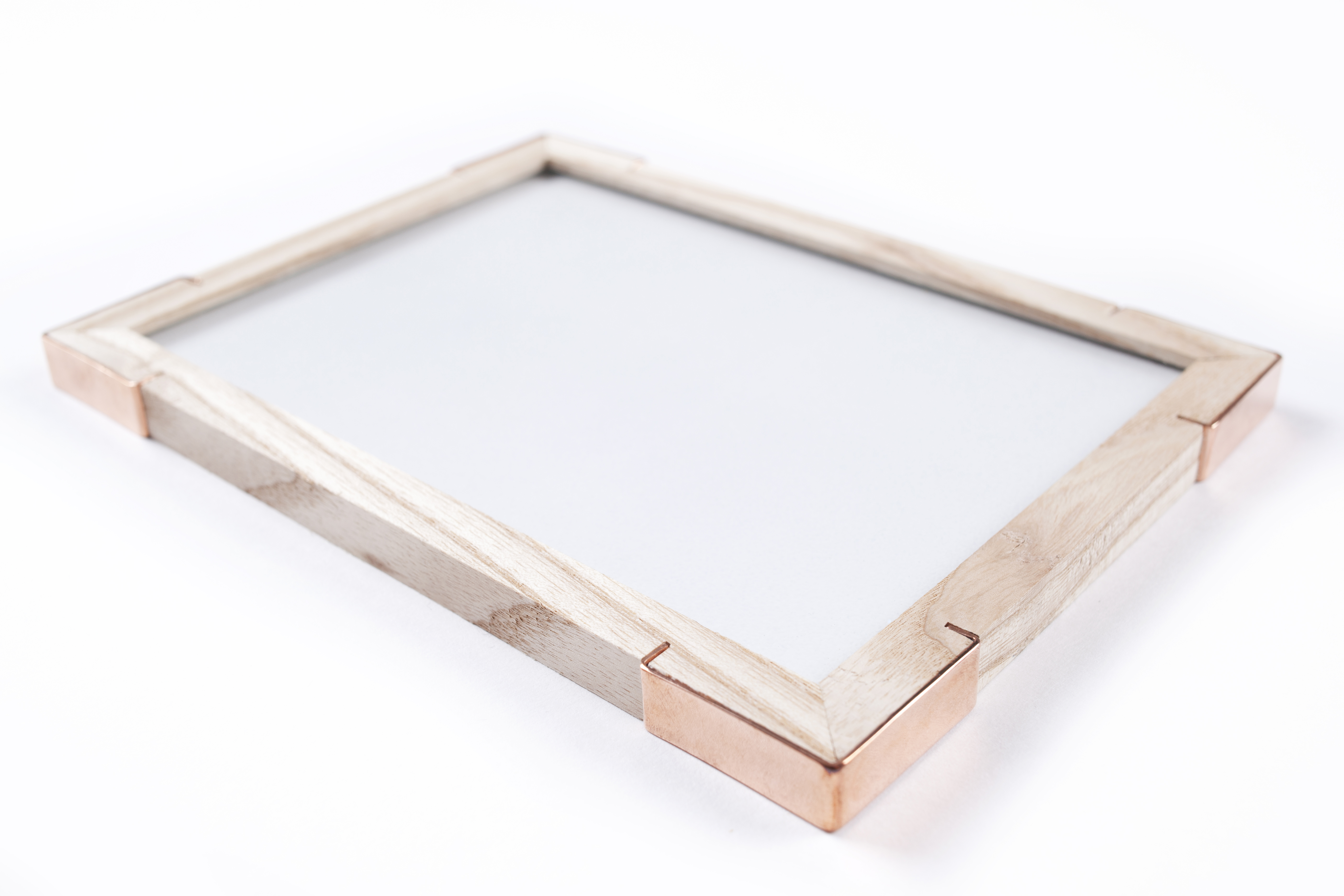 Det innovative i løsningen er at rammen holdes sammen av L-formede hjørneprofiler i kobber. Dermed forsvinner behovet for skruer og spikre, samtidig som rammen blir en vakker gjenstand i seg selv.