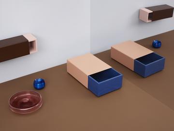 Sara Wright Polmar fikk i kjølvannet av fjorårets Milano-utstilling en sofa i produksjon hos danske Bolia. I år stiller hun med «Matchbox», en fyrstikkeskeinspirert oppbevaringsløsning som fungerer både som skrin og vegghengt hylle.