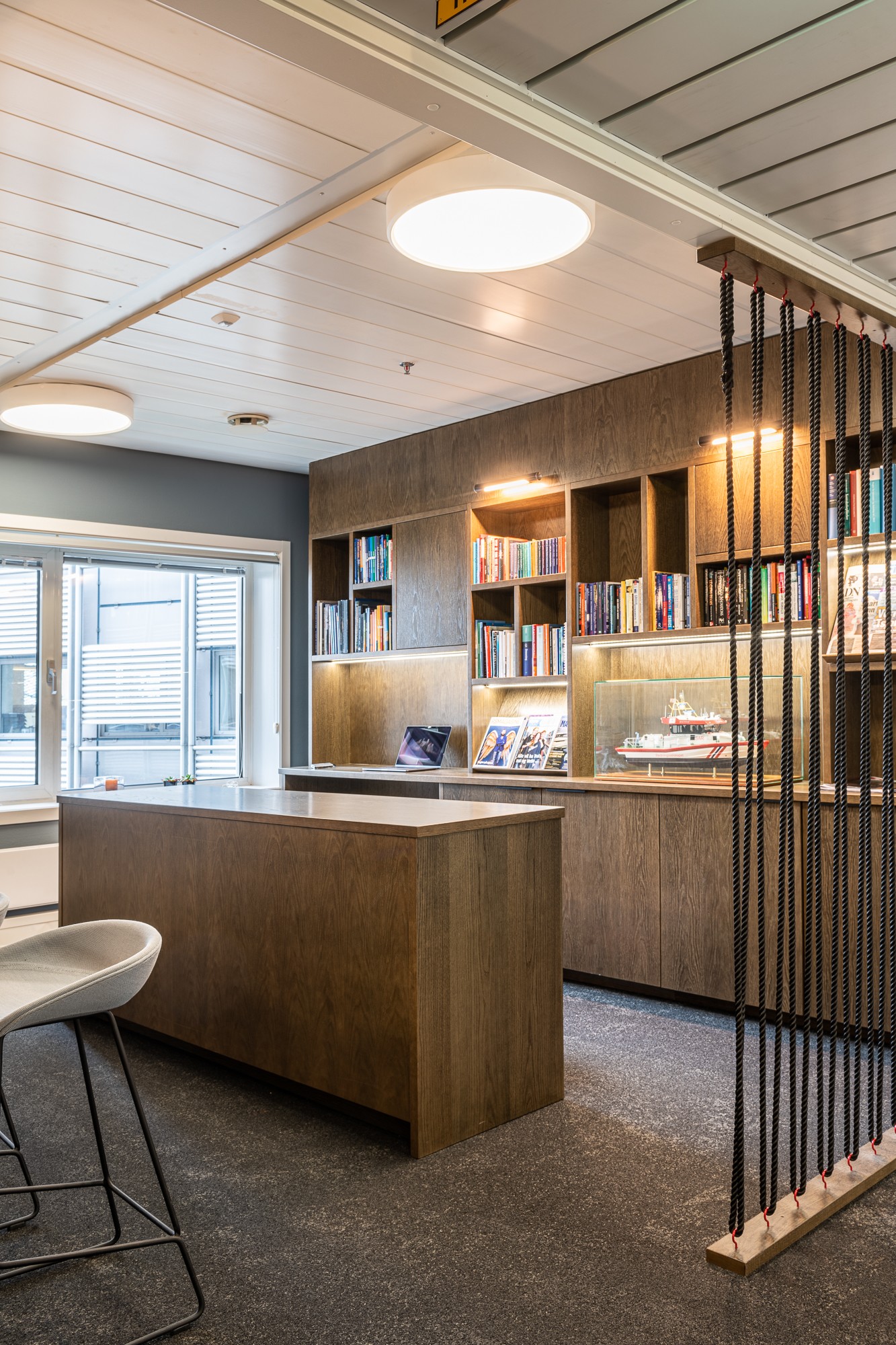 REDDET KJØKKENET. Da Ramsøskar Interiørarkitekter pusset opp lokalene til Redningsselskapet, fikk det gamle kjøkkenet nye fronter. Skapene fikk stå. Foto: Niklas Hart