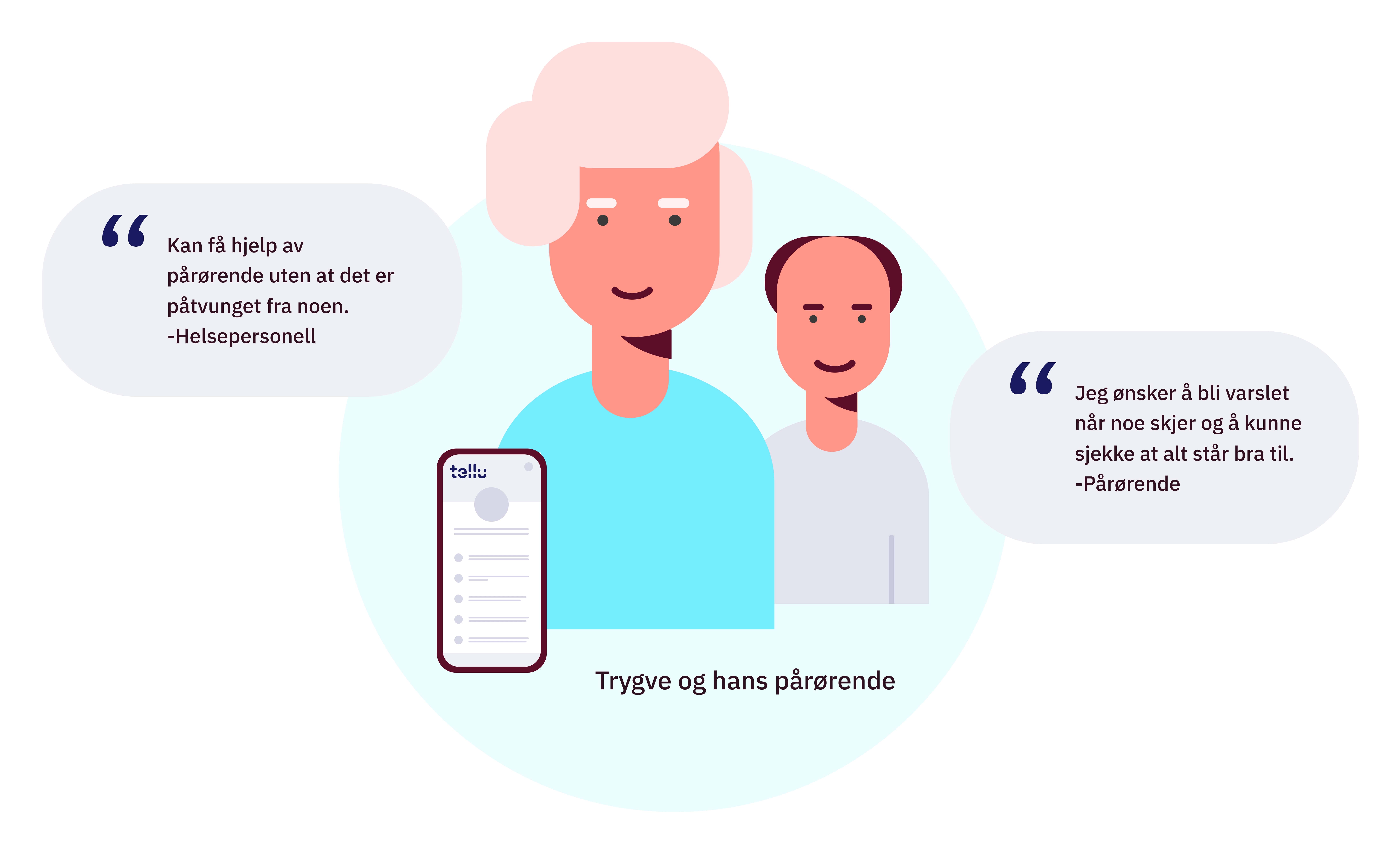 Pårørende er en svært sammensatt gruppe med ulike krav. Derfor har Tellu kartlagt hva slags behov og ønsker de har samt sett på helsepersonellets behov og virksomhetenes forventninger. Nå skal designselskapet Halogen hjelpe til med å videreutvikle konseptet. Ved å jobbe systematisk med inkluderende design allerede før den første koden skrives, øker sjansen for at løsningen blir enkel, intuitiv og trygg å bruke for et bredt mangfold av mennesker.
