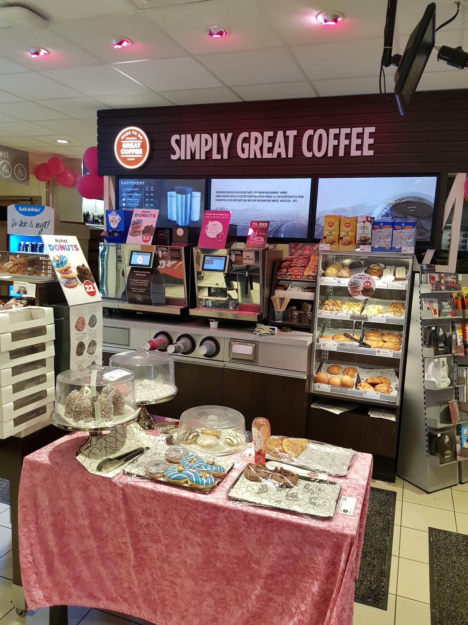 Medarbeidere på Circle K E-18 Sekkelsten har pyntet til Rosa sløyfe-aksjonen.