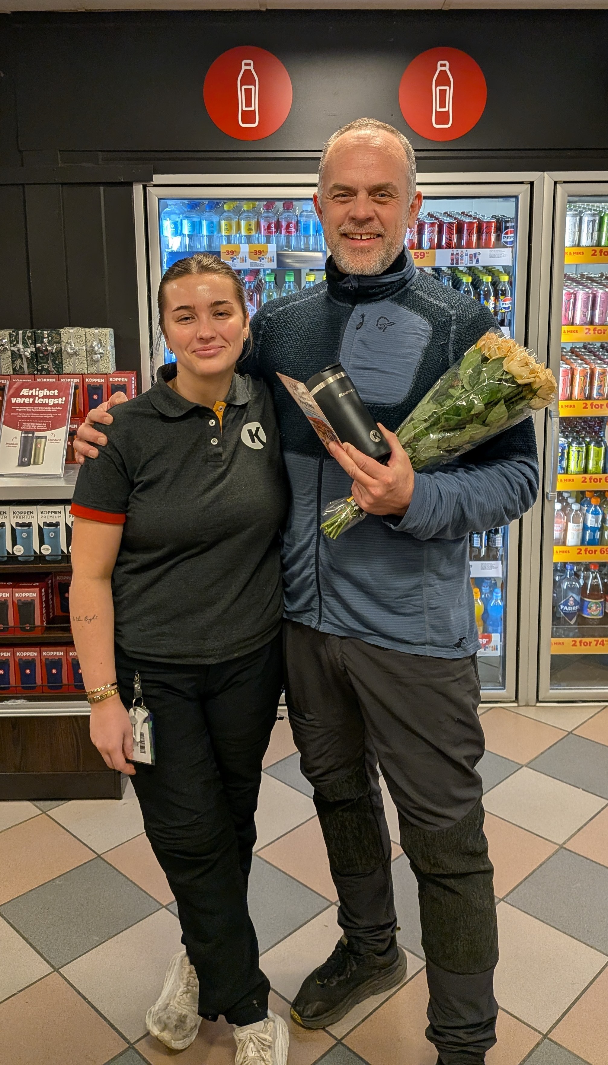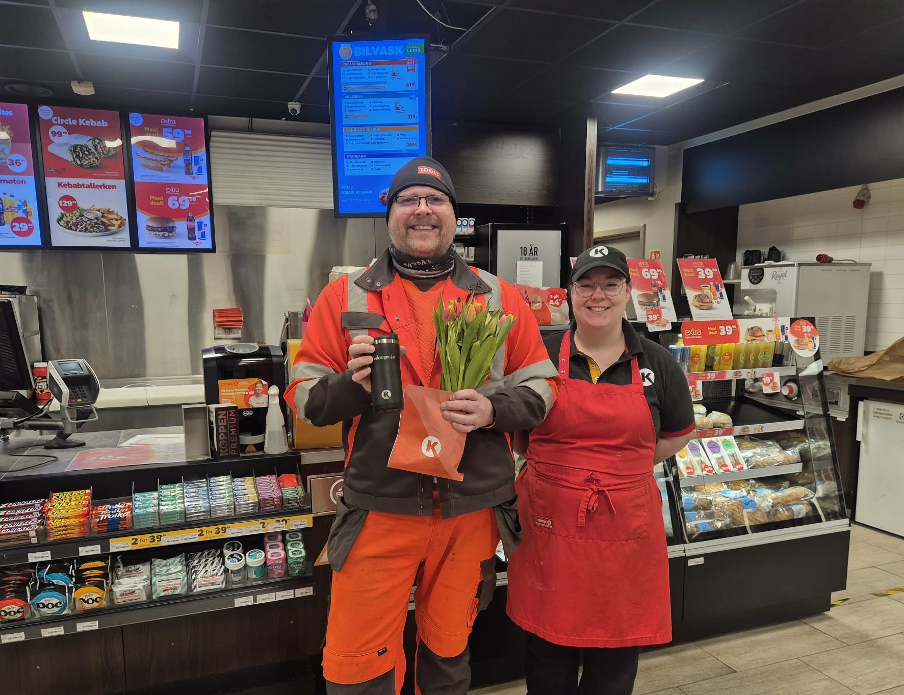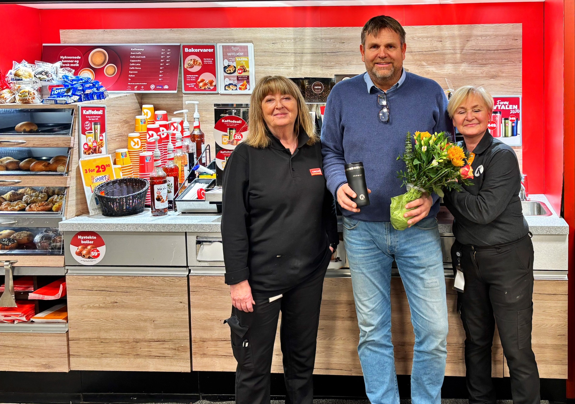 – Patrik Karlsson er en ekte gledesspreder som gjerne slår av en prat eller en spøk med oss som er på jobb. Han hilser alltid med et stort smil og et rungende «hallo», og latteren hans lyser opp dagen – enten det er tidlig morgen eller sent på kvelden. Derfor ønsket vi å gi ham en liten oppmerksomhet som takk for at han alltid er «vår» kunde, sier Jeanette Nilsen, butikksjef ved Circle K Hunstad.
