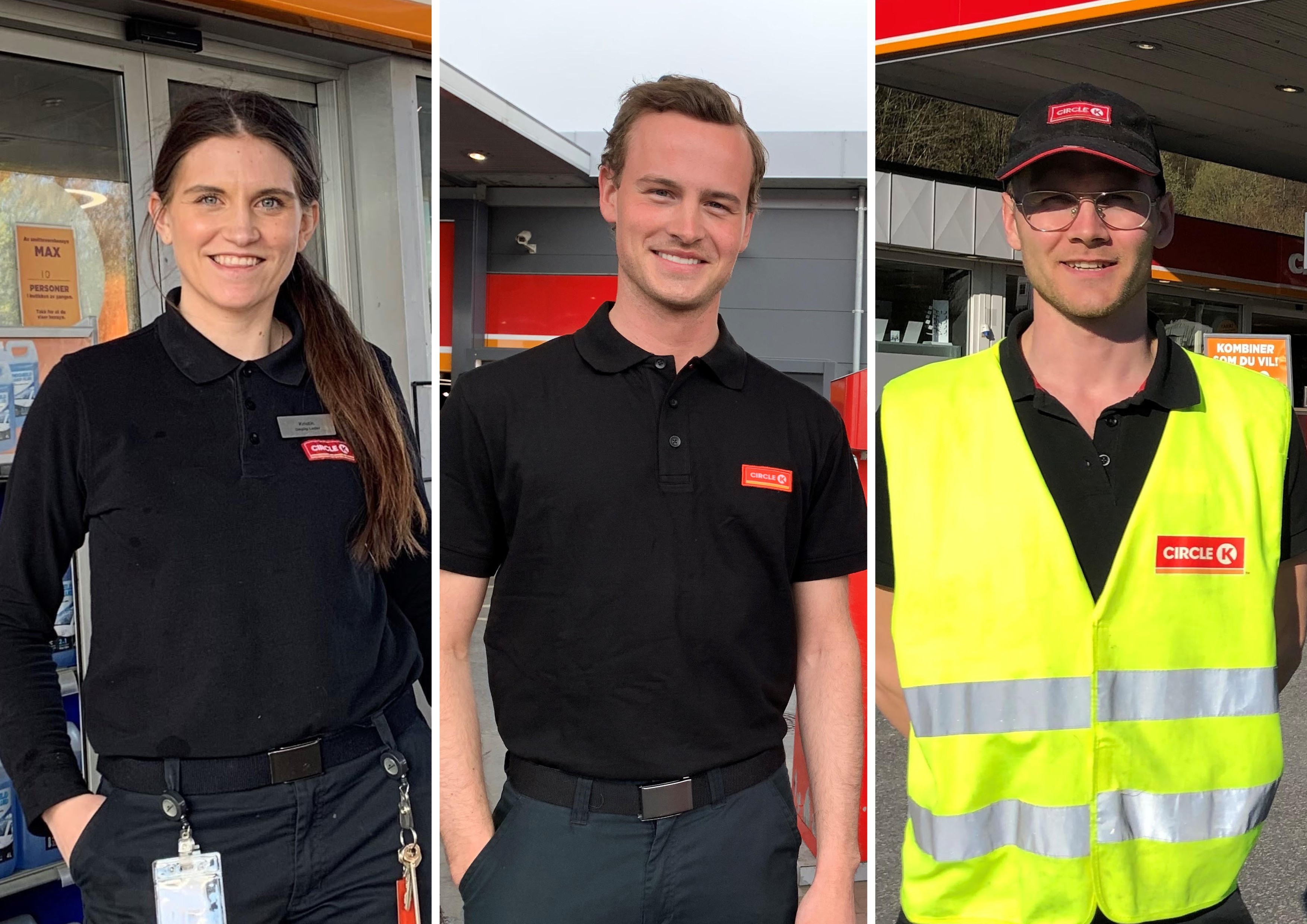LEDERTALENTER. Både Kristin Olsen Antal-Karlsen, Kristian Bertelsen og Mattias Høiland har gjort lynkarriere i Circle K etter å ha fullført selskapets talentprogram. Foto/montasje: Circle K Norge