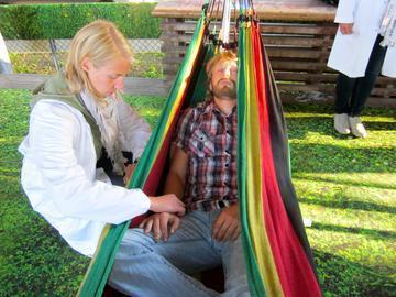 Gjennomsnittlig hvilepuls for en voksen person ligger på rundt 70, men den er langt lavere blant toppidrettsutøvere. Petter Northug skal ha en hvilepuls helt nede på 36 slag i minuttet. Sand blir overrasket da hun får høre at hun er rett bak Northug og andre toppidrettsutøvere. – Jøss, jeg visste ingenting om hvilepuls før jeg kom hit. Men jeg tenkte at er det noe jeg kan konkurrere i, så er det avslapning, sier hun.