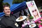 Også standen, dekorert med barbieeffekter, er han fornøyd med.