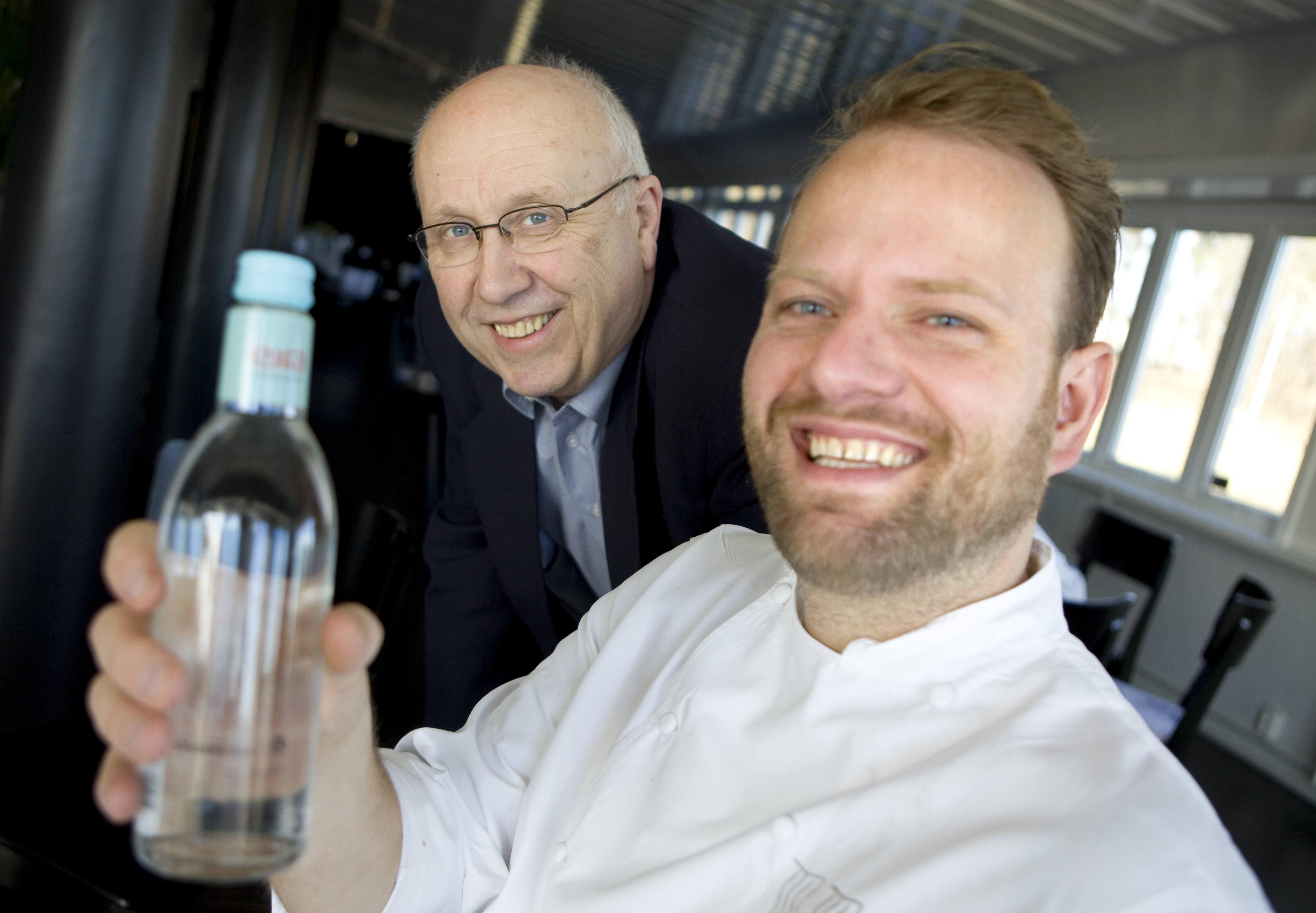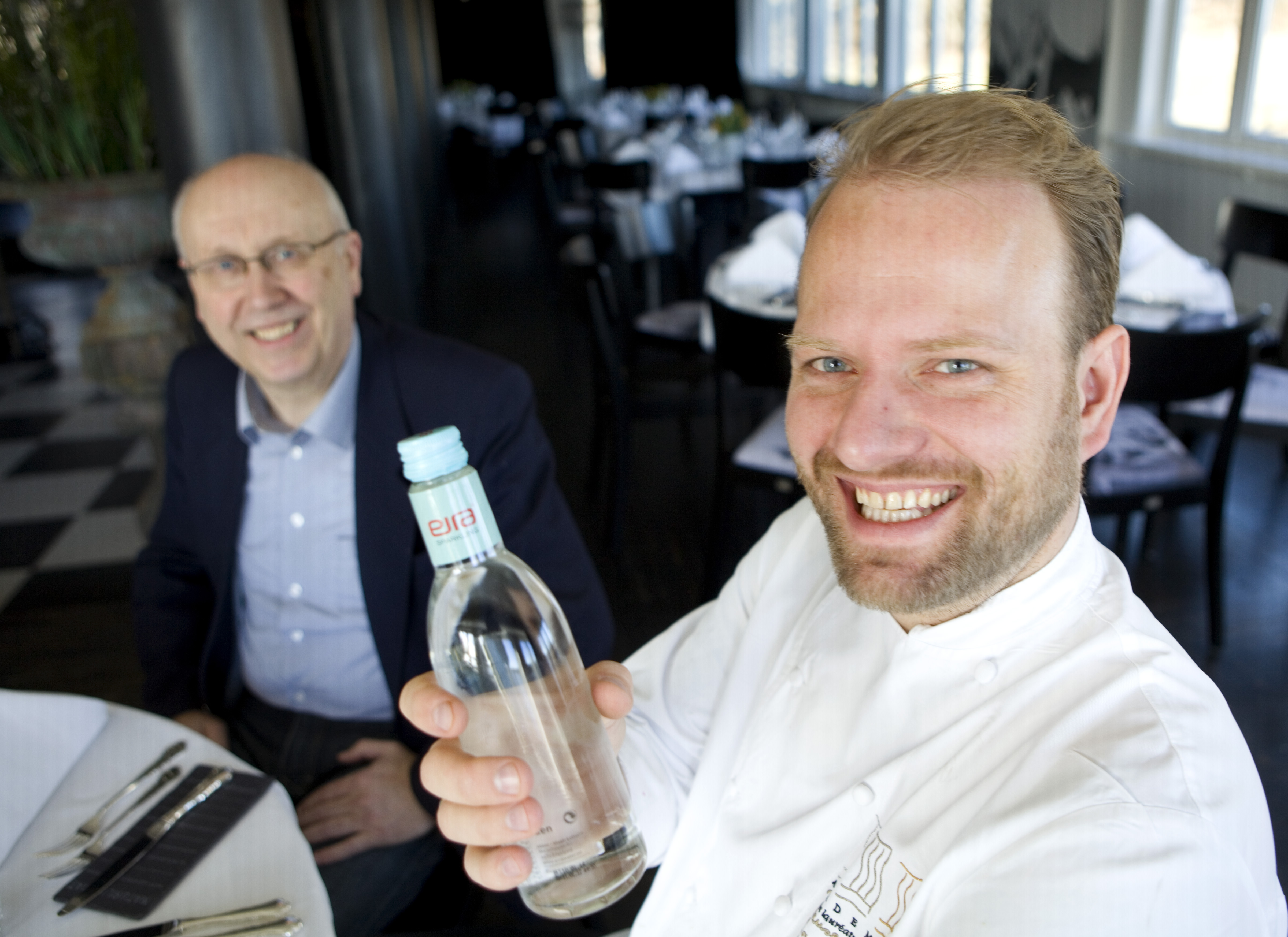 – Vann er grobunn for alt, og det skal være det reneste som finnes. Og dette vannet, det smaker ingenting! Det er perfekt, sier superkokken med entusiasme i stemmen. Han snakker om den iøynefallende flasken han holder i hånden, som det står ”EIRA” på.
