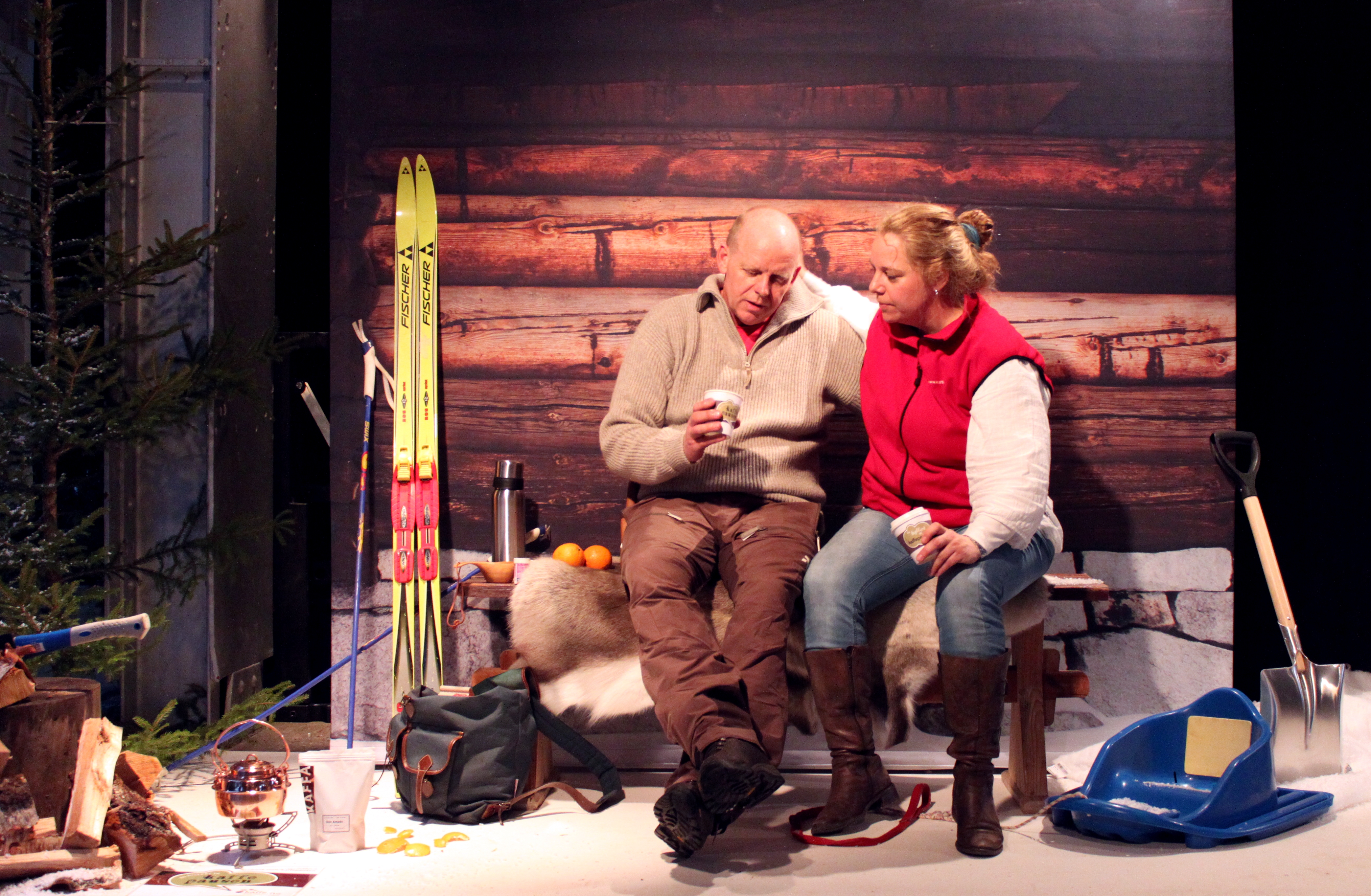 KAFFEPAUSEN: Nå kan du sende inn ditt eget kaffepausebilde til foto@kaffe.no og konkurrere om mange flotte kaffepremier. Du kan også legge kaffepausen til Stortorget i Oslo i dag, og bli fotografert der. Det blir servert gratis kaffe til alle med mulighet for å velge sitt eget bakgrunnstablå; kaffebaren, på kjøkkenbenken eller i naturen. Marit Lynes i Norsk Kaffeinformasjon og Arild Johnsen i Espresso Mobile tar gjerne en kaffe i det fri. Foto: Espresso Mobile