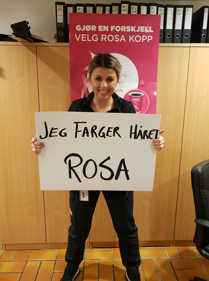 – De ansatte gav meg en utfordring. Dersom stasjonen klarte å samle inn 100 000 kroner, måtte jeg farge håret mitt rosa. Jeg er ikke så glad i rosa, så det å se meg i rosa hår var nok ekstra motiverende for de ansatte, ler hun.