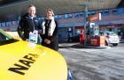AKSJONSKLARE. Frank Roger Brakstad i Circle K og Inger Elisabeth Sagedal fra NAF, her ved Circle K Brynseng, er klare til å gå i gang med årets påskeaksjon. Foto: Circle K