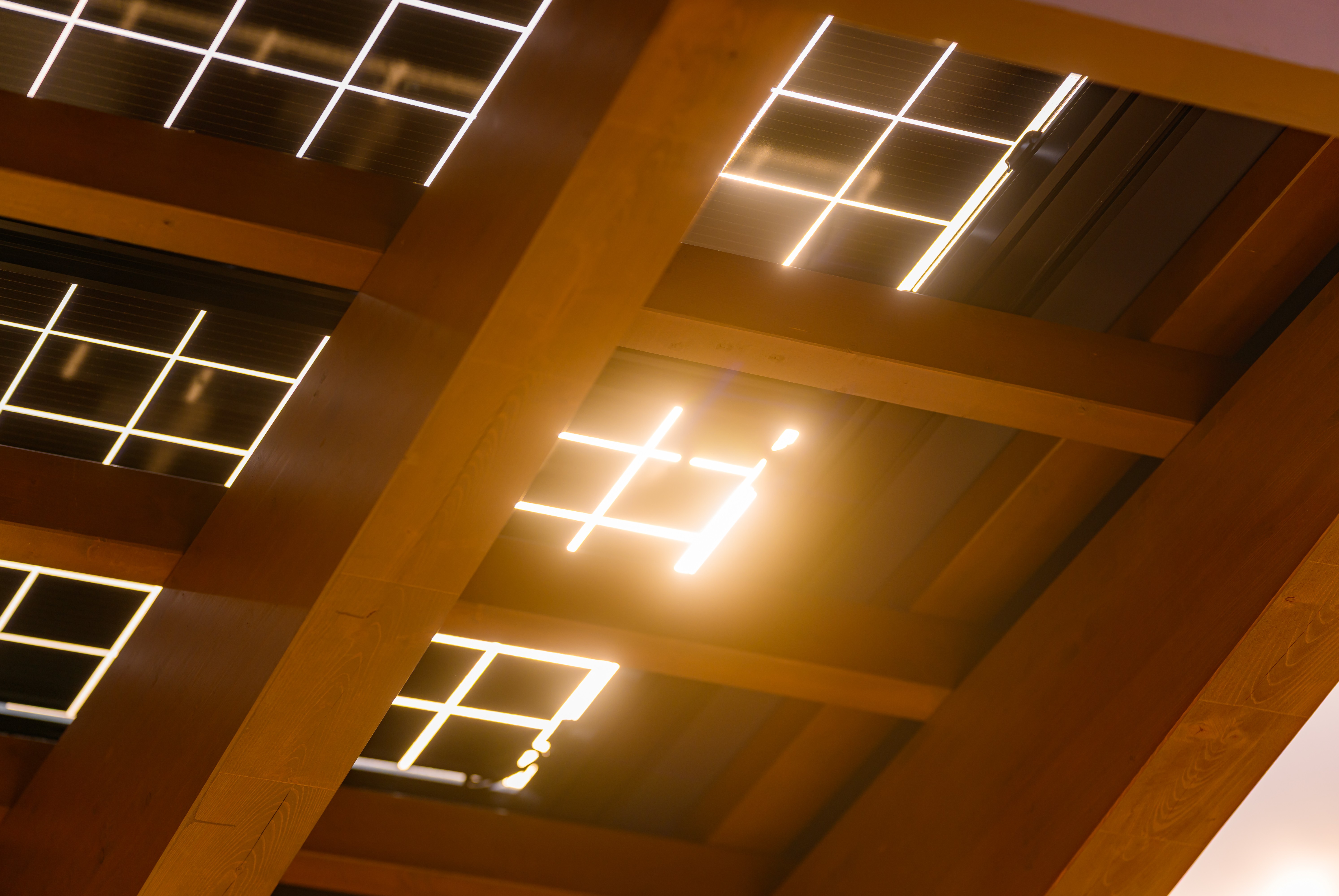 SOLKRAFT. Ladetaket leverer strøm til laderne ved hjelp av solceller. Foto: Terje Borud
