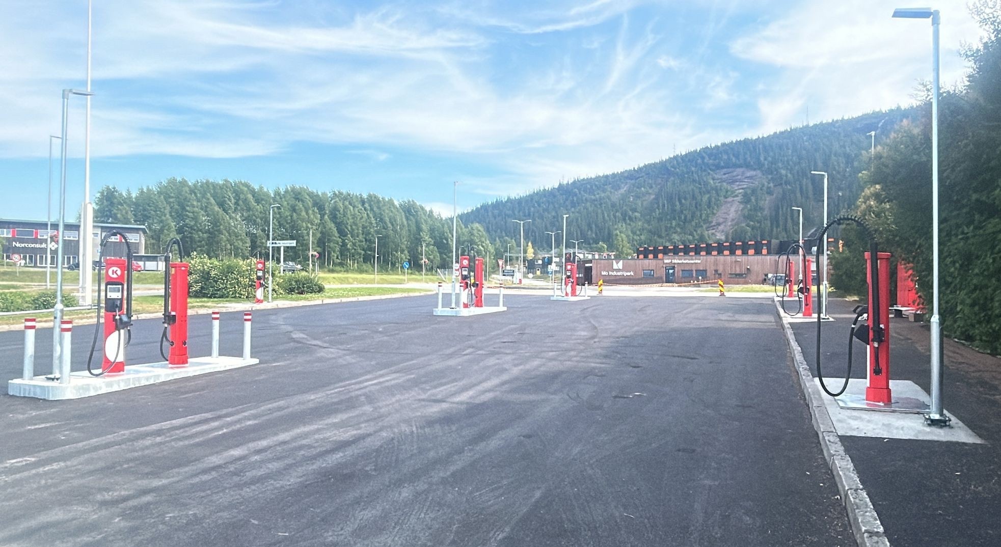 - Circle K Mosjøen: 6 stk. 400 kW-ladeplasser To av ladeplassene blir under pumpetaket. Mellomløsning med ladecontainer.