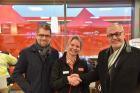 LOKALE ARBEIDSPASSER. Ordfører Rune Høiseth (t.h.) tror den nye stasjonen vil øke interessen for Ringdalskogen som næringsområde. Her tar han stasjonsdriver Ida Burud i hånden. T.v. Thomas Støkken, norgessjef for Circle K. Foto: Trond Eriksen