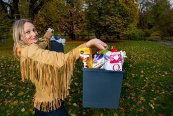 Miljøengasjerte og USA-interesserte Vibeke Andresen kildesorterer gjerne avfallet sitt. Hun er ikke Trump-tilhenger. Foto: Johnny Syversen