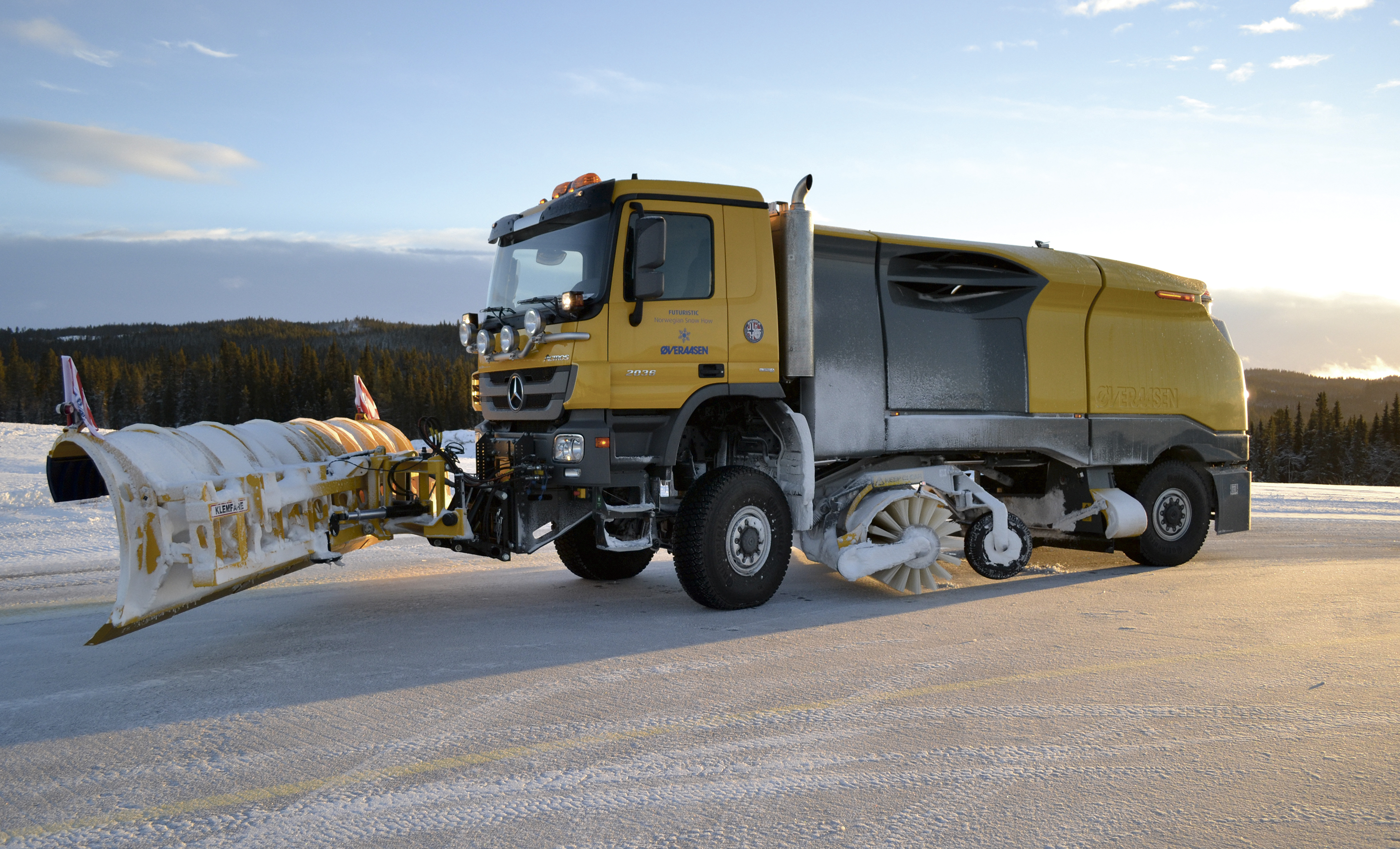 Det er godt over 100 år siden Øveraasen startet med motorproduksjon, og i allerede i 1923 kom de opp med verdens første snøplog som kunne monteres på bil. Deretter har det gått slag i slag. I dag jobber snøryddingsmaskiner fra Gjøvik på flyplasser i Europa, Nord-Amerika, Grønland, Tibet og til og med på Sydpolen. – Det er ikke akkurat noen ulempe å komme fra Norge når du skal selge maskiner for snørydding. Kundene stoler på at vi vet hva vi driver med her oppe, smiler Øveraasen.