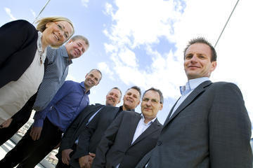 SATSER PÅ ITSM: Steria har ansatt Marianne Rømset, Eugene Aandal-Frøystadvåg, Morten Jensen, Stig Hoel, Per Harald Pettersen og Ingemar Johansen fra NordicAware. Til høyre avdelingsleder Mads Myrvoll. Svein Selstø var på oppdrag hos kunde da bildet ble tatt. Foto: Johnny Syversen