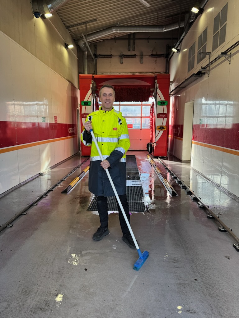 Circle K vasker flere millioner biler i Norge årlig. Hagen forteller at våren er den aller travleste tiden i vaskeanleggene, særlig etter at folk har kommet ned fra påskefjellet.