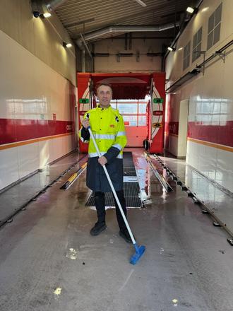 HOLDER DET PENT. Roy Jøsok Hessen sørger for at det er rent og pent i bilvasken på Circle K Moa. Foto: privat