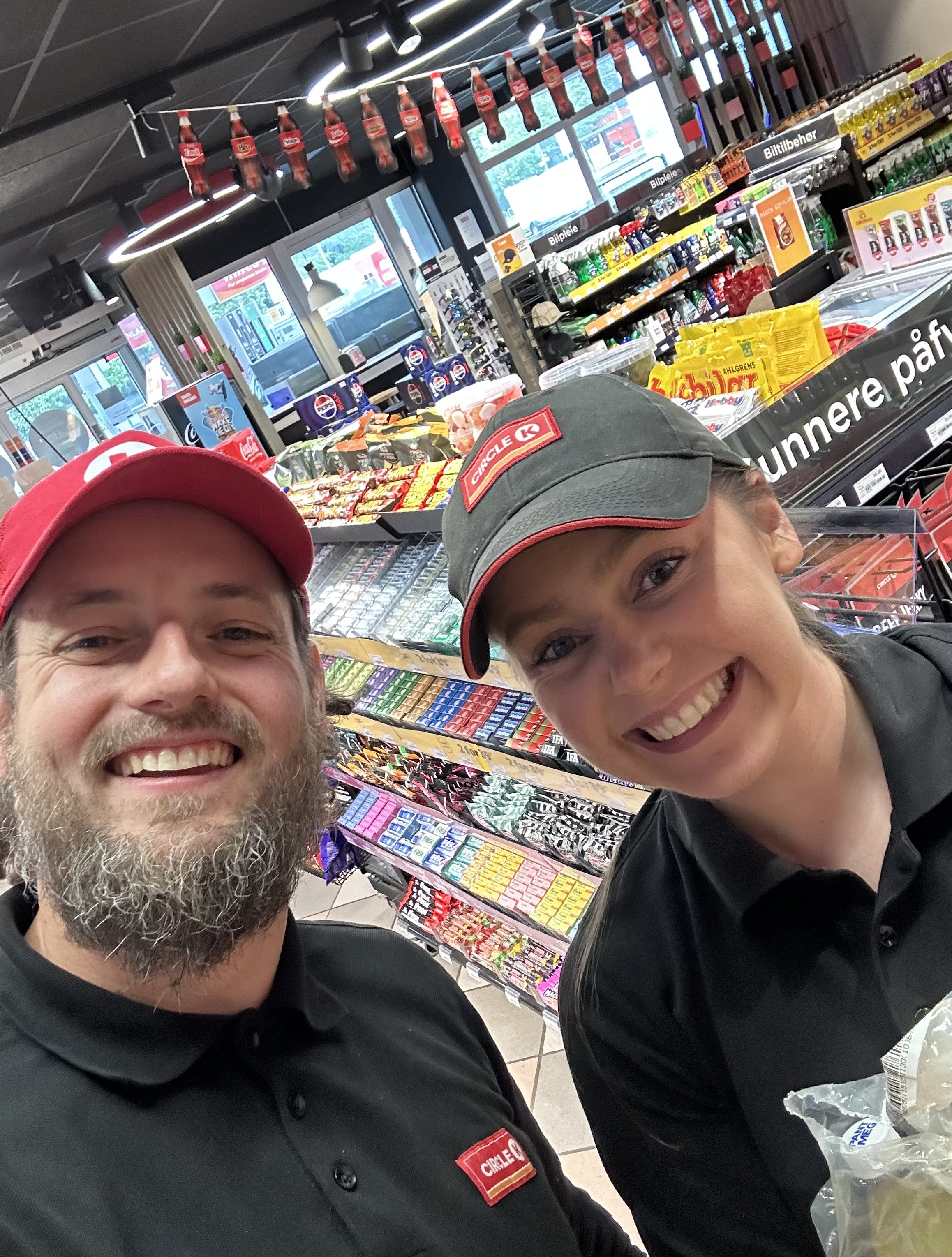 BEST I VEST. Ingen av Circle Ks stasjoner i Vestland vasker flere biler enn stasjonen på Nesttun i Bergen. Her poserer daglig leder Thomas Drange sammen med nestleder Sara Halvorsen. Foto: privat