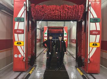 VASKER MEST I TRØNDELAG. Sarah Domaas og Marie Jakobsen viser fram bilvasken på Circle K Tunga. Foto: privat