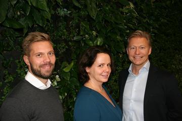 APOTEK PÅ NETT. Prosjektleder Oscar Olsen og kommersiell direktør Marianne Næss i Norsk Medisinaldepot er fornøyd med sitt toppmoderne nettapotek. Til høyre prosjektleder ved Devoteam Fornebu Consulting, Harald Buset. Foto: Henning Poulsen