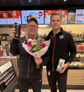 Om lag 22 tonn kaffe har blitt kvernet og traktet på Vestfold-stasjonene til Circle K i år. Øverst på fylkets kaffetrone sitter Kevin Fröding og kollegene hans i Larvik.