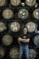 Evan Lewis foran lagringsfat hos Ægir. Foto: Thor Brødreskift