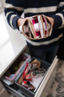 3. Stapp kartonger ned i en tom kartong. Korker og lokk kan godt henge utenfor.