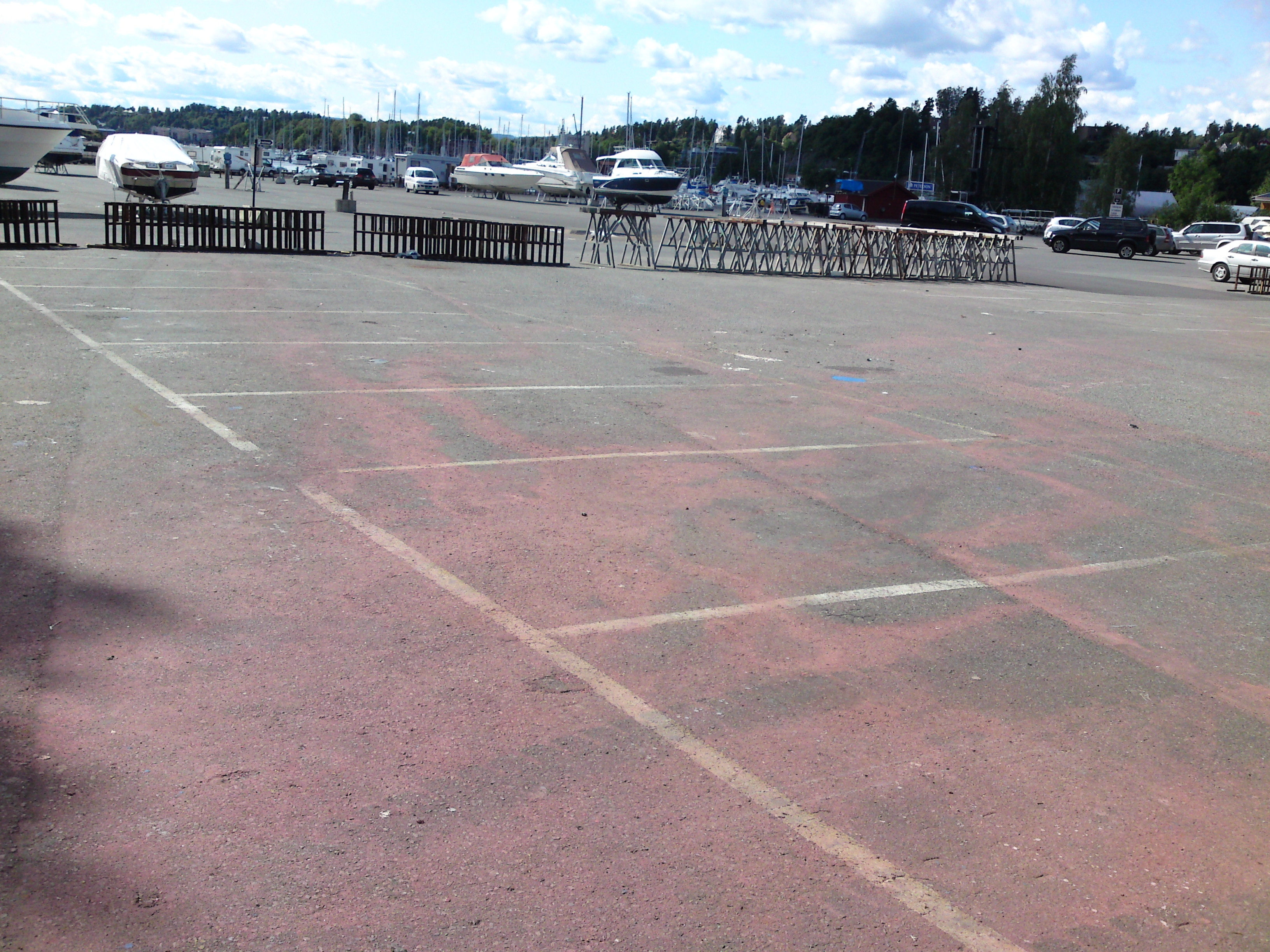 FARLIG BUNNSTOFF: Slik ser det ut etter at regnvær har spredd bunnstoffet på bakken under båtene som sto her. Prøver fra grunnen på land og fra havbunnen ved norske marinaer er ofte svært forurenset, opplyser Norsk Gjenvinning. Foto: Ren Marina