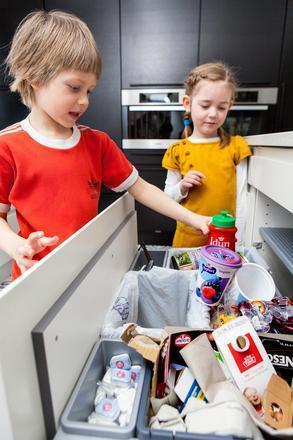 KILDESORTERER HJEMME. De fleste foreldre ønsker at barna deres skal vokse opp med gode miljøvaner. Da er kildesortering av husholdningens avfall et naturlig sted å begynne. Foto: Johnny Syversen