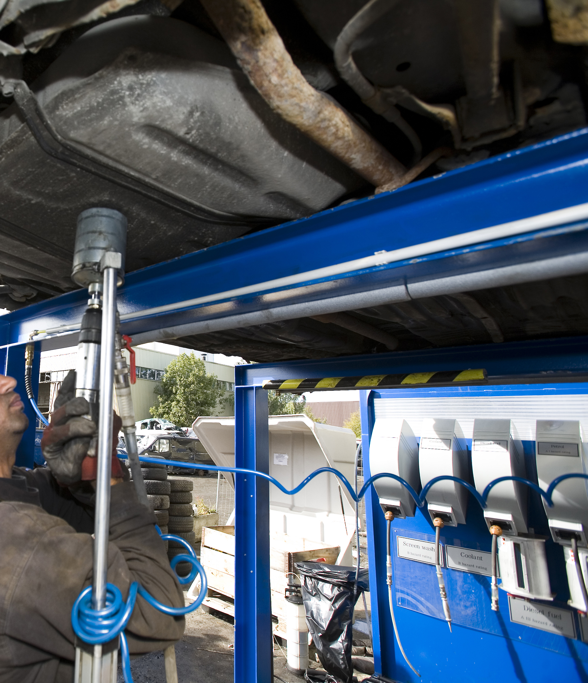 Når bilens siste mil er tilbakelagt skal den leveres til et mottak som er godkjent for miljøsanering av bil. Der blir den plukket fra hverandre. – Vi sorterer blant annet ut drivstoff, batteri, vindusspylevæske, dekk, olje og klipper av katalysatoren. Deretter blir bilen presset og fraktet til nærmeste fragmenteringsanlegg, forteller Bergman.