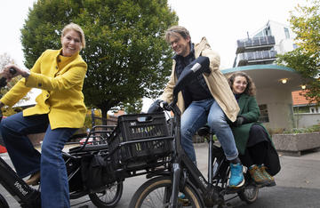 TRÅKKER TIL. Anne Elisabeth Bull (t.v.) i DOGA deler ut 9 millioner kroner i designdrevet innovasjonsstøtte. Her med representanter for prosjektet Hverdagsmaskinen - Anders Hansen i Whee!, og Kari Anne Solfjeld Eid fra Hoi. Foto: Sverre Christian Jarild