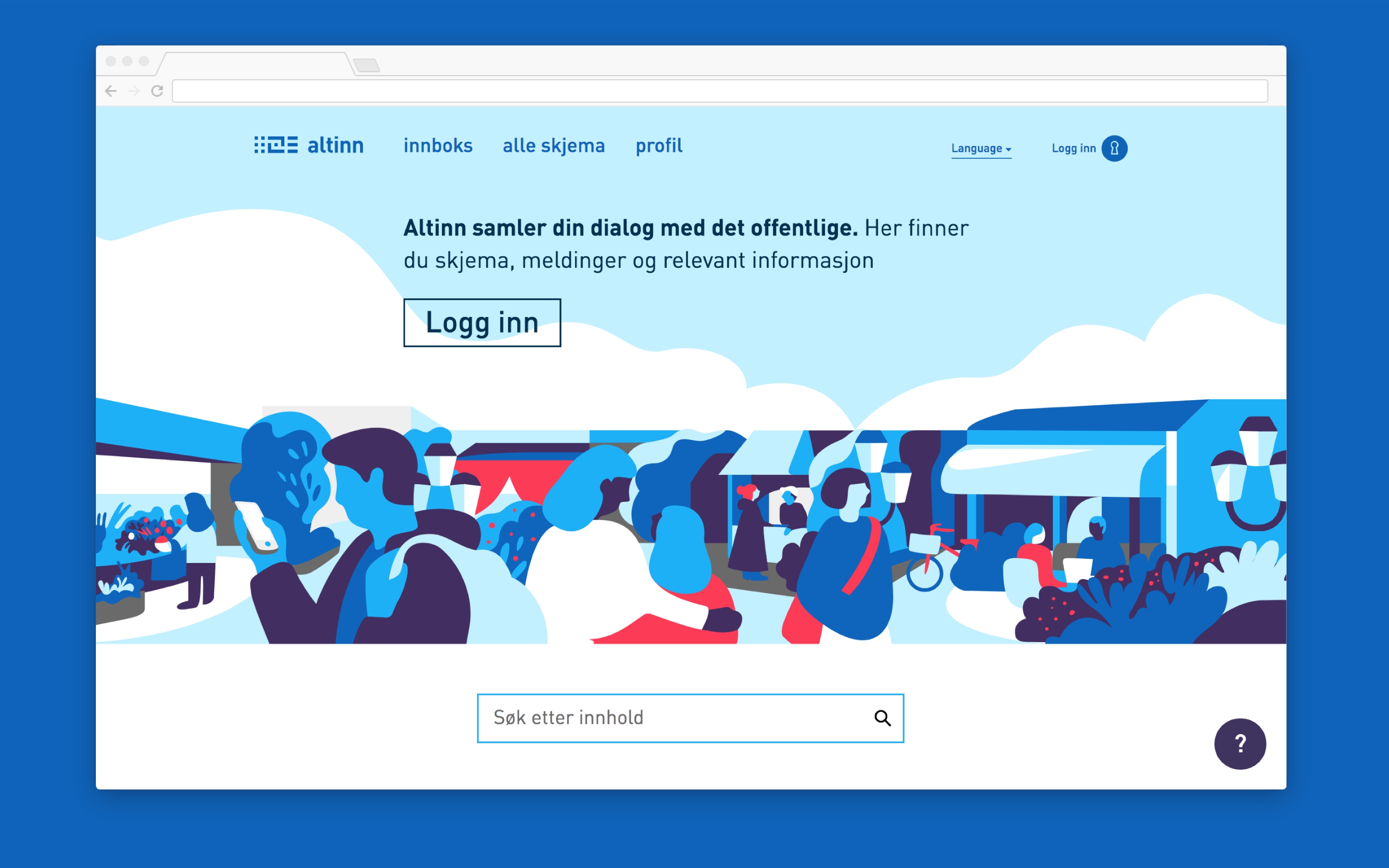 Alt har imidlertid ikke vært i skjønneste orden. Kritiske røster har sammenlignet Altinn med en endeløs klikksafari og brukt portalen som eksempel på alt som er galt med offentlig byråkrati. Sammen med Fossland+Foss og byHands har Brønnøysundregistrene derfor gjennomført en omfattende designprosess for å gjøre Altinn til et hyggeligere og enklere sted å besøke.