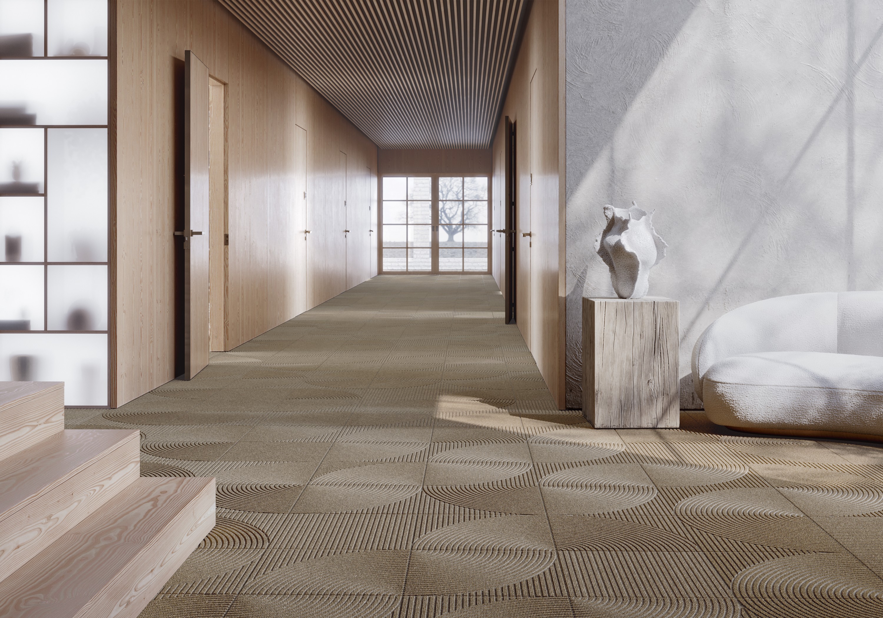 I tillegg tar de med et nytt produkt myntet på kontraktmarkedet: Zen teppefliser – designet av Kristine Five Melvær.