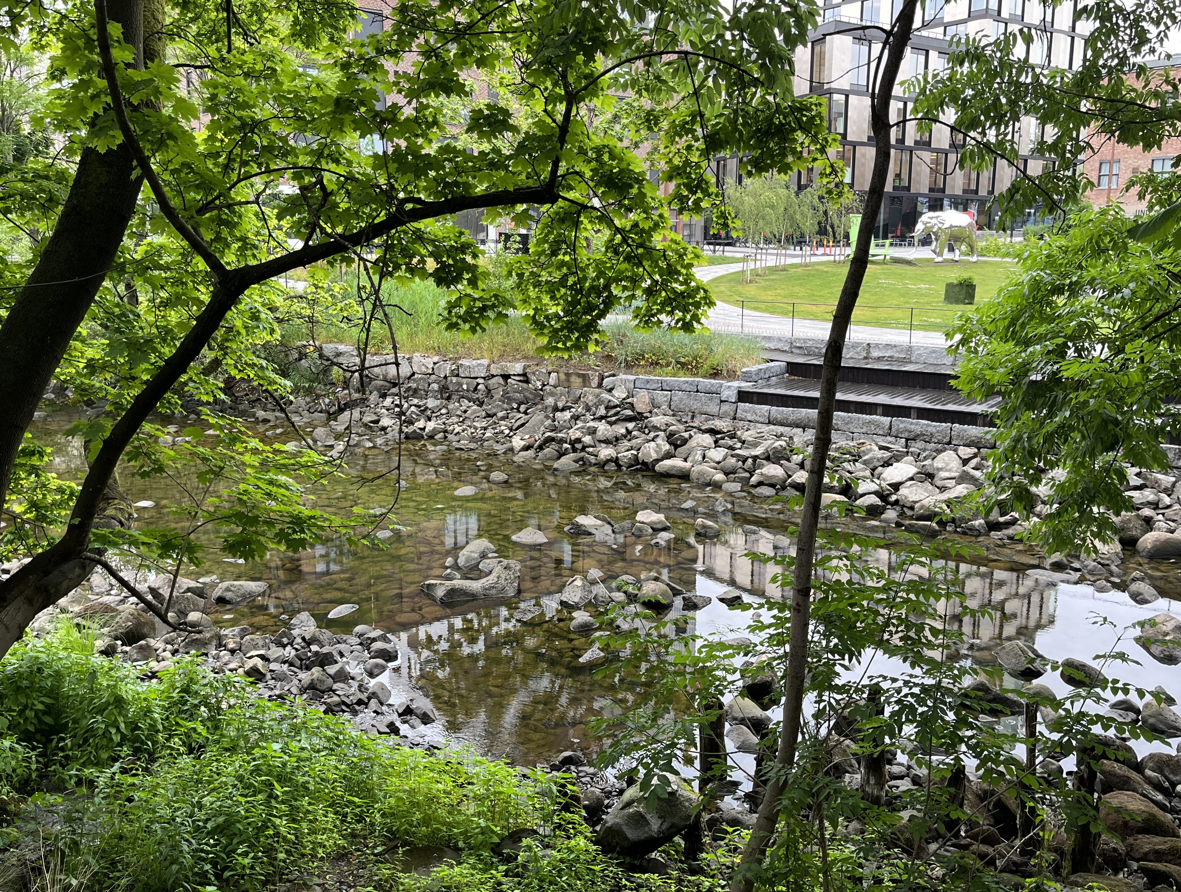 Verket ligger langs Mosseelva, og er et område med lang og stolt industritradisjon. Da de gamle fabrikktomtene skulle transformeres til en ny bydel, videreutviklet Lala Tøyen en plan om å sette vannet i sentrum for urbaniseringen. Gjennom elven løftes natur og biologisk mangfold inn i den nye bydelen. Overvann blir håndtert i åpne, naturbaserte løsninger, mens forurenset vann samles og renses i vegetasjonsgrøfter.