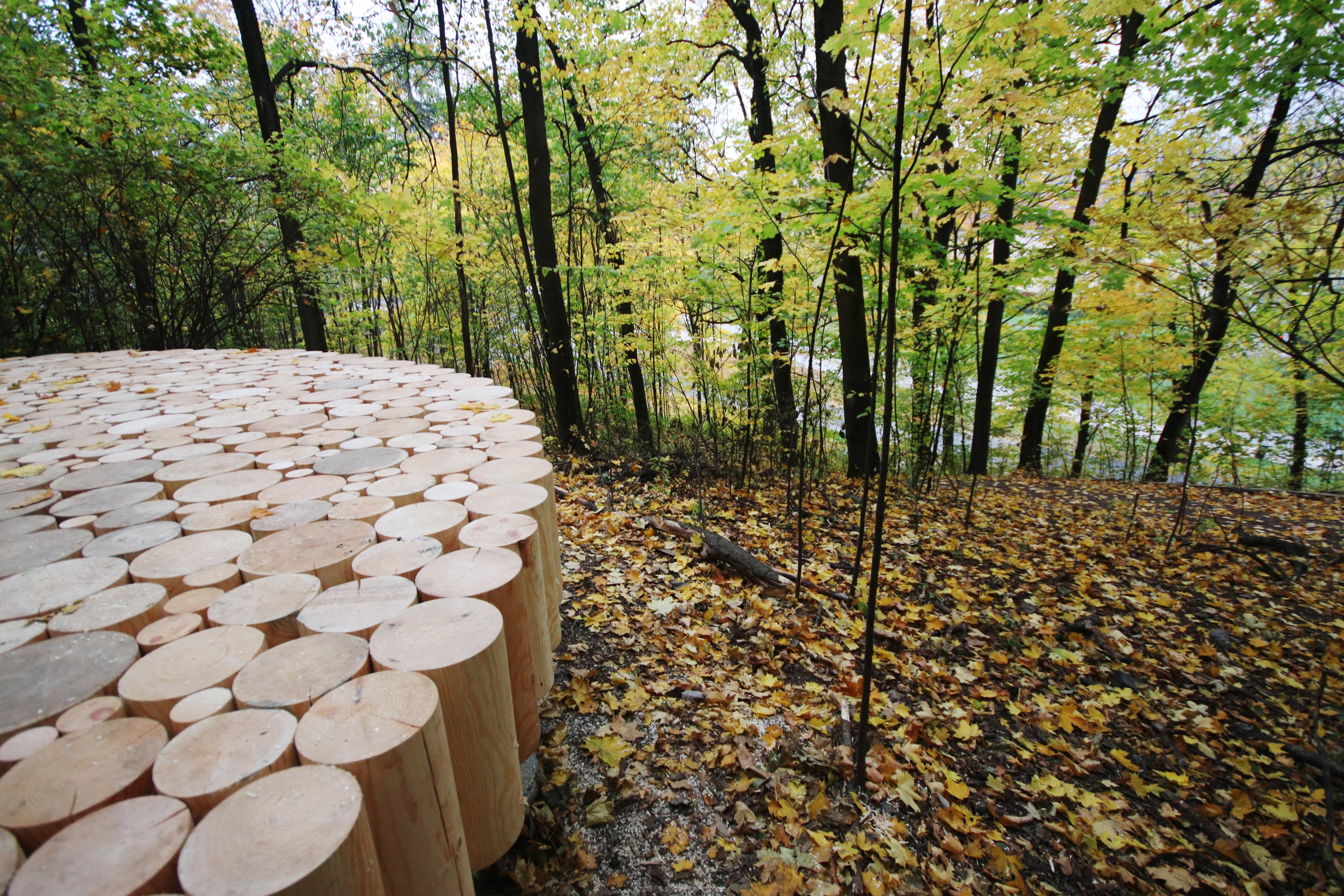 Den majestetiske løvskogen ved Tøyenbadet ble i liten grad brukt av de lokale barna. FAU på Tøyen skole ønsket et tursted i nærskogen, og i en samskapingsprosess med Lala Tøyen har de fått nettopp dette: En oppsiktsvekkende og inviterende tufo. Den består av nesten tusen kubber satt sammen til et sirkulært gulv, og gir store og små et startpunkt for å nyte og utforske naturen.