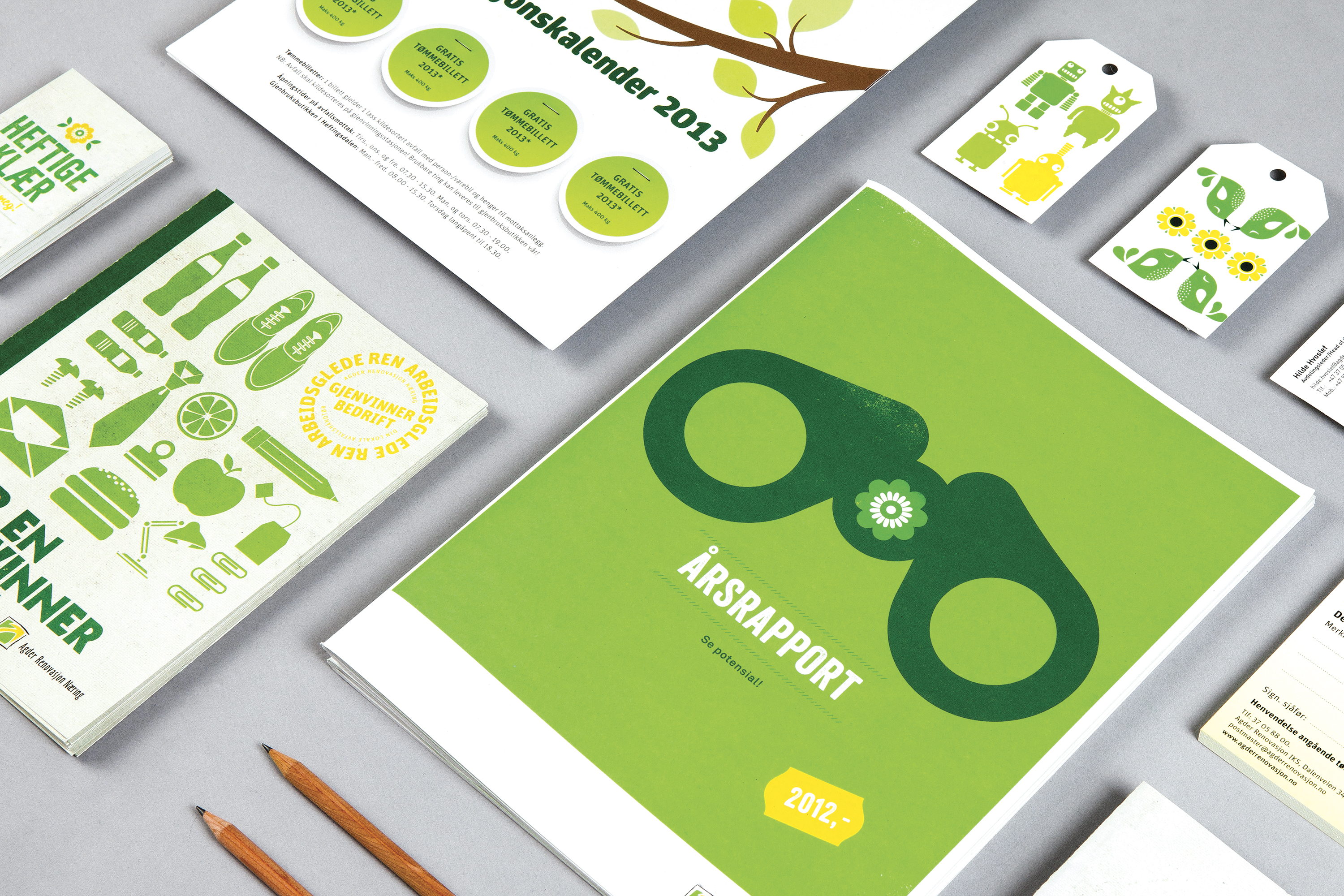 Det lokale designbyrået Innoventi ble hentet inn. De fikk bortimot frie tøyler til å skape en ny profil for renovasjonsselskapet. Designerne kom opp med en positiv og fargerik visuell identitet som med humor og folkelighet snakker til alle typer mennesker i samfunnet. Infografikk og illustrasjoner gjør at budskapet blir lett å få med seg. Figurer, bakgrunner og skrifttyper byttes jevnlig ut, mens fargene – grønt, gult og sort – sørger for kontinuitet og gjenkjennelse.