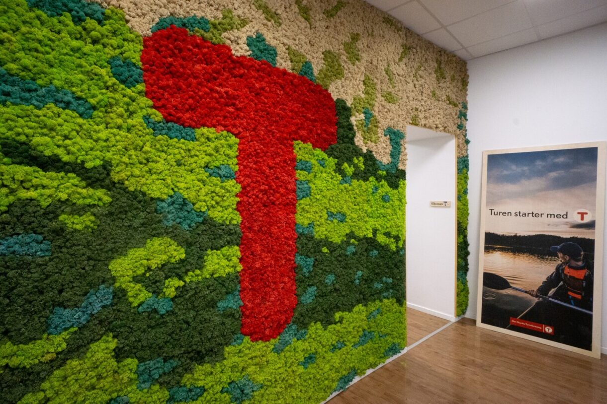 WALL-IT får hederlig omtale i kategorien møbel- og interiørdesign under utdelingen av DOGAs Innovasjonspris for inkluderende design i Oslo onsdag 24. januar. På bildet en spesialdesignet mosevegg hos Den Norske Turistforening. Foto: WALL-IT