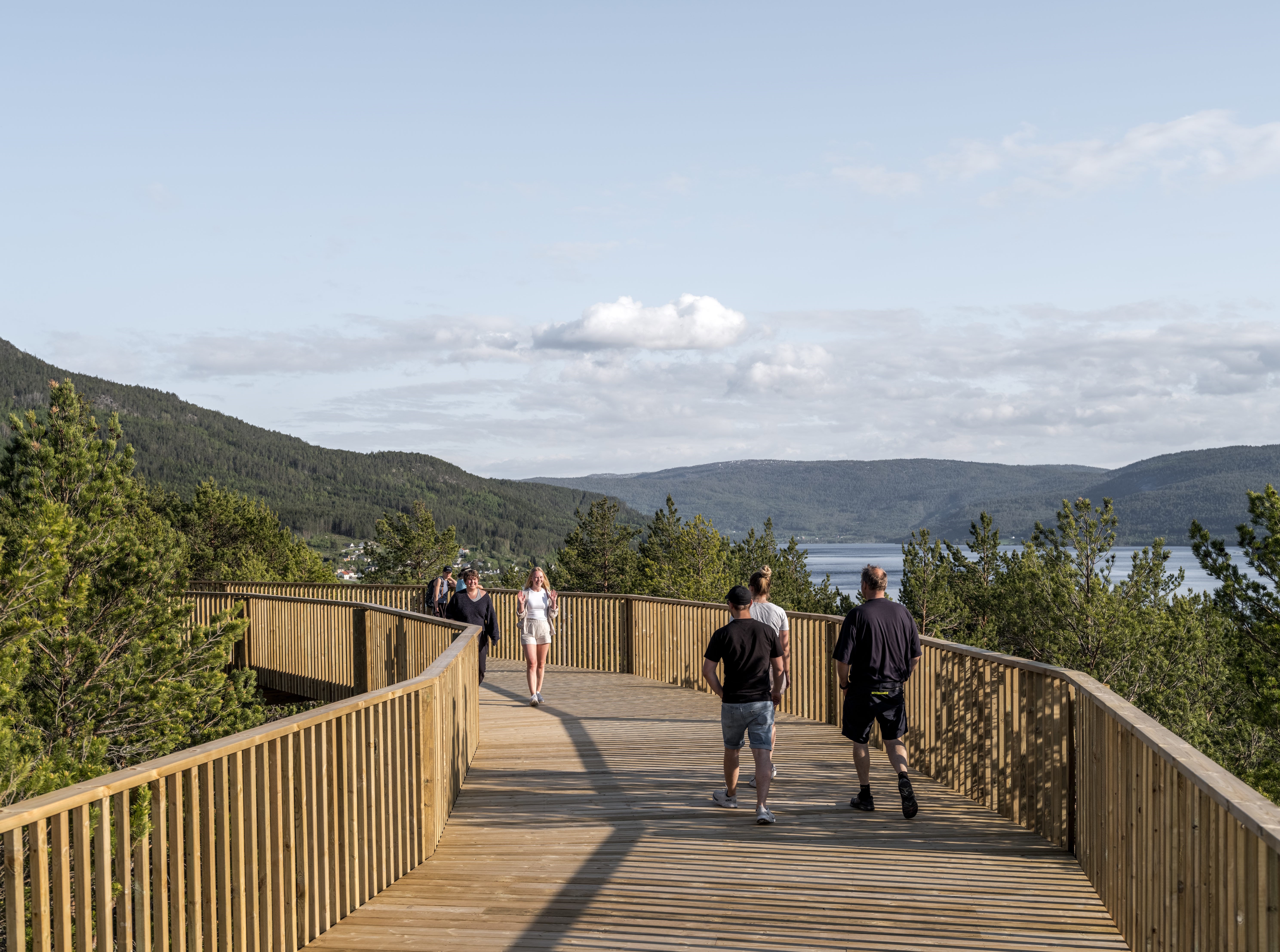 Gjennom brukermedvirkning og dialogmøter med en rekke organisasjoner og interessenter, fikk kommunen og samarbeidspartnerne alle relevante behov på bordet. Dette brukte de til å bygge Norges første tretoppvei, en én kilometer lang furusti som snirkler seg opp fra vannet via spektakulære utkikkspunkter og ender på toppen av Klokkarhamaren. Takket være en svak og jevn stigning er dette en topptur alle kan være med på.