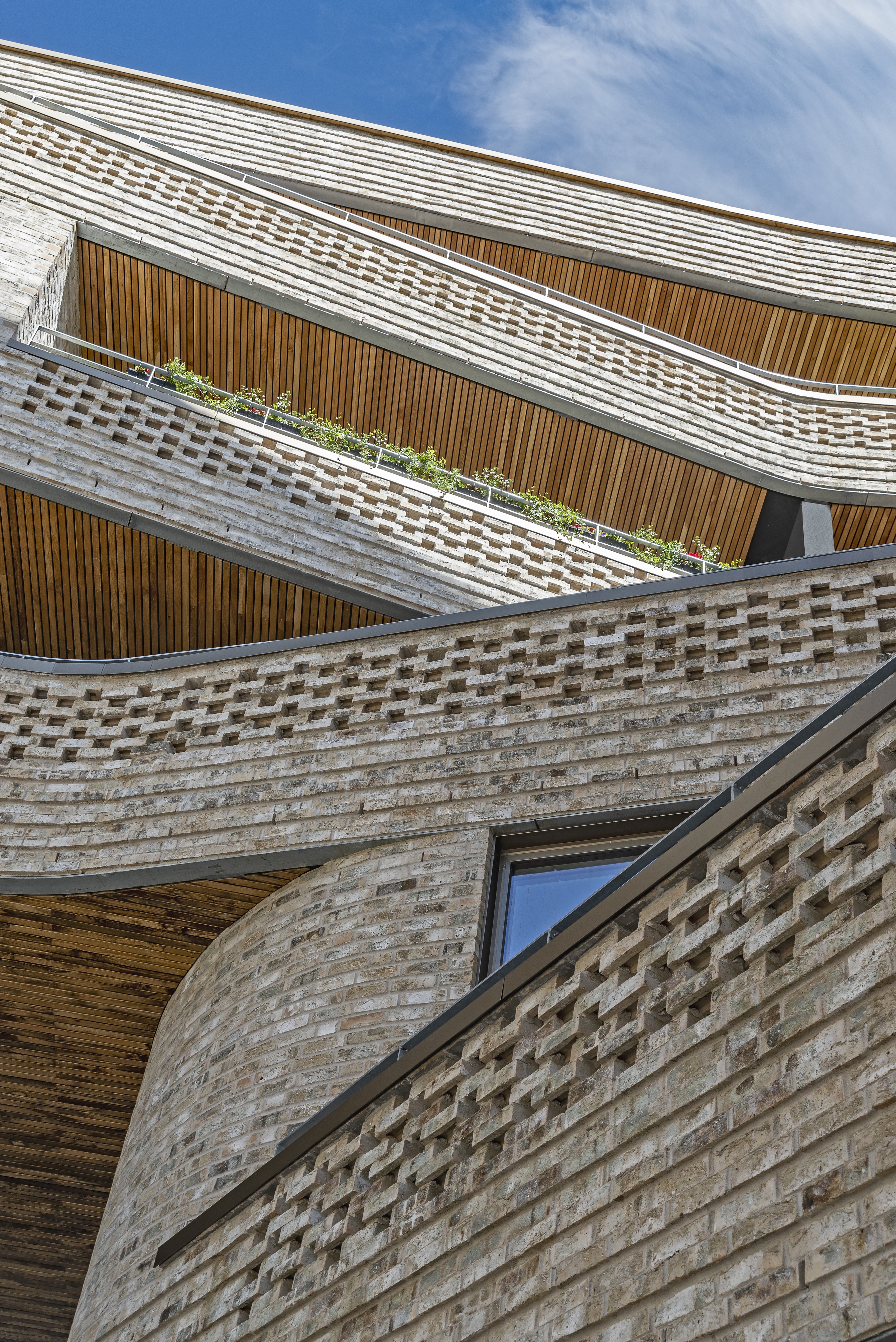 Tegl og eik er de førende materialene i kvartalets utvendige fasade, og gir et organisk og mykt inntrykk. Arkitektene har hentet inspirasjon fra Asker sentrums buede teglfasader, og disse formene preger Wesselkvartalets visuelle uttrykk.