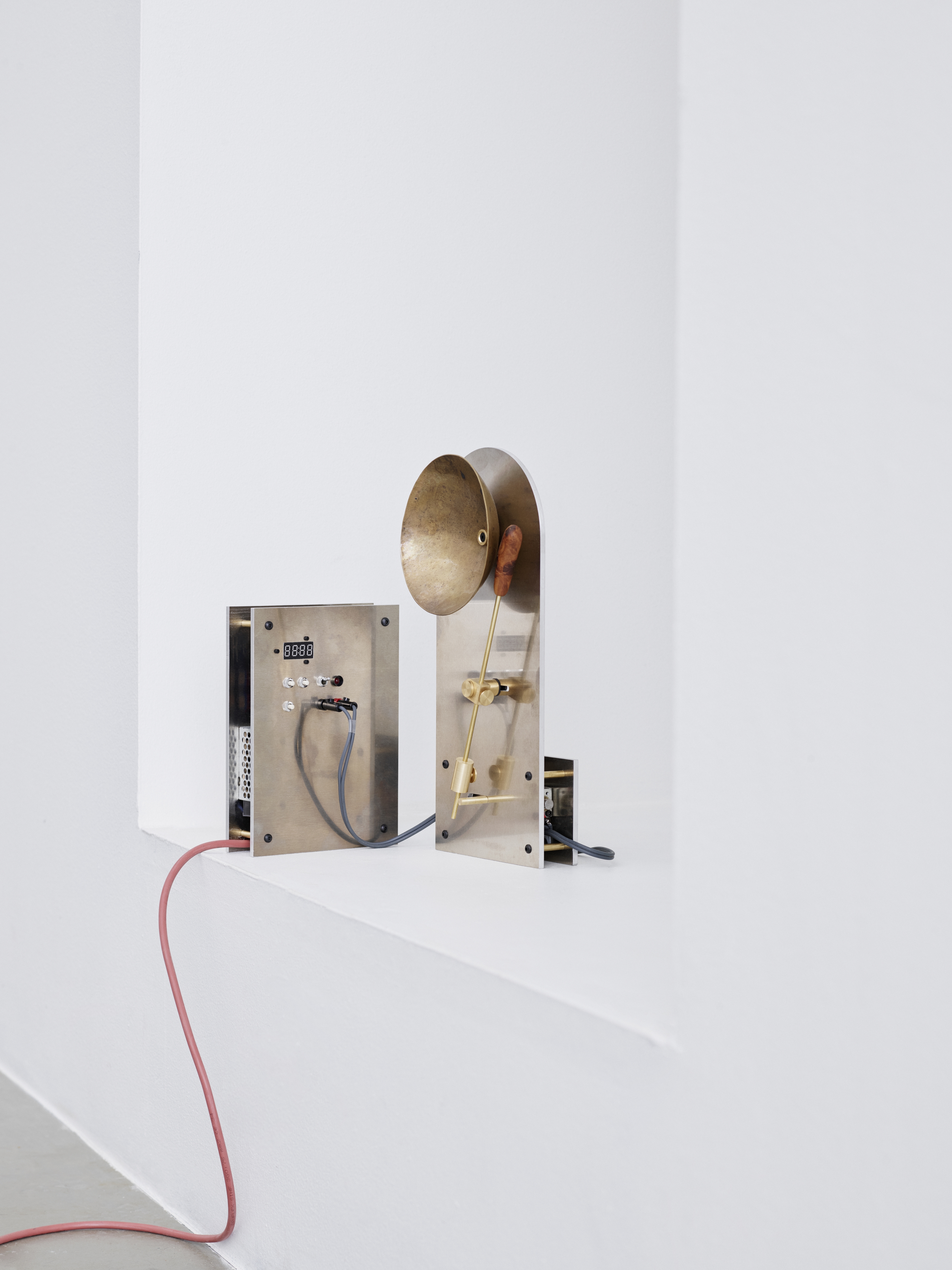 Korntved Ruud skal vise fram installasjonen «Material Acoustics», som består av tre skulpturelle gjenstander: to klokker og en dørklokke laget av tre, metall og ulike elektroniske komponenter.