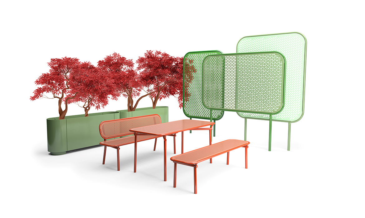 «Pop» er en familie med fargerike og fleksible utemøbler som Five Melvær har skapt sammen med den norske produsenten Vestre. Til Milano tar Vestre med seg både en benk, et bord og en skjerm i den lekne og iøynefallende serien.