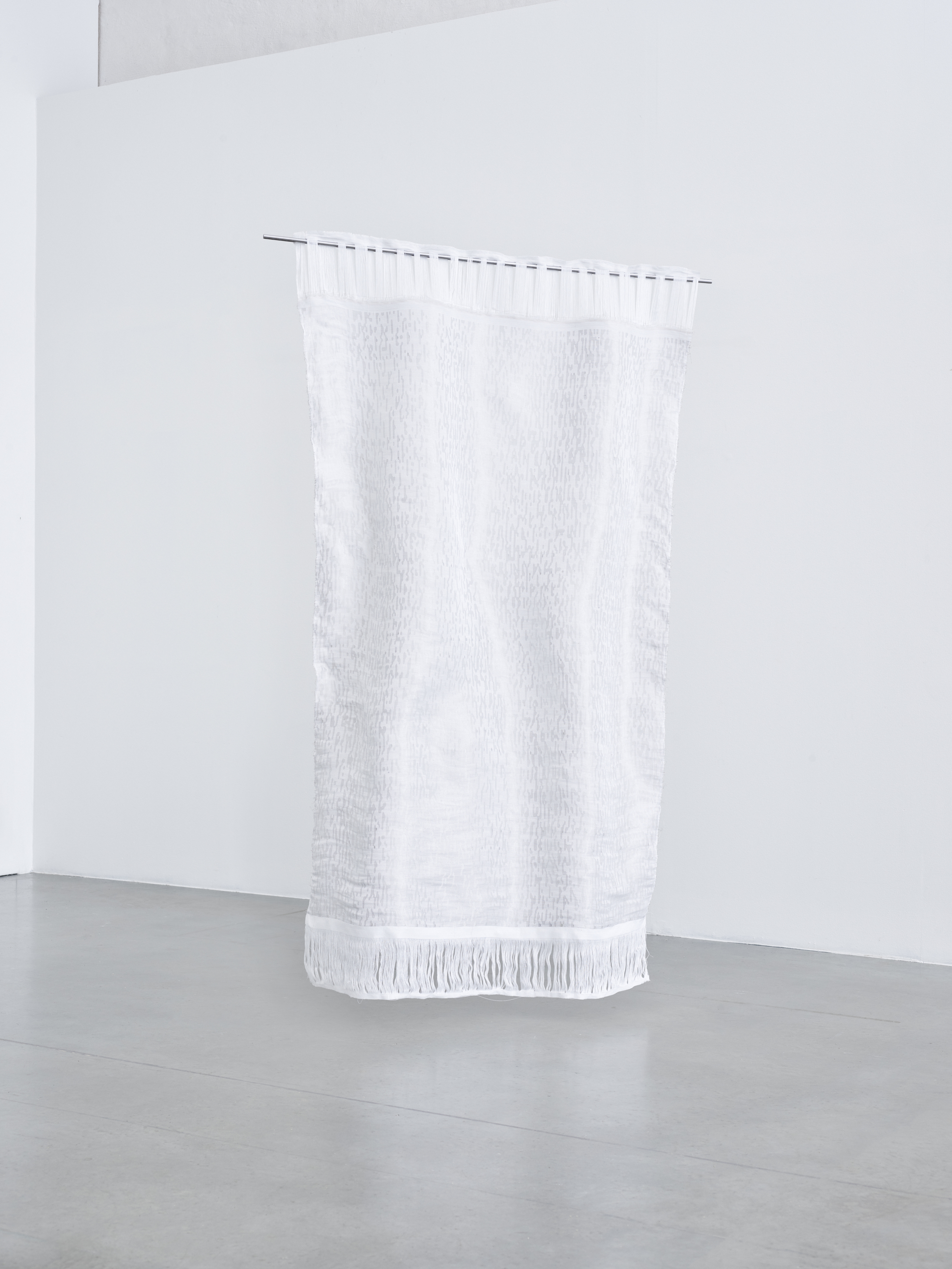 Hun skal vise fram «Sample & Hold», en 2,5 meter høy og 1,5 meter bred tekstilinstallasjon som også er et slags instrument. Takket være kobbertråden som er vevd inn gir tekstilet fra seg lyd når folk går nær det.