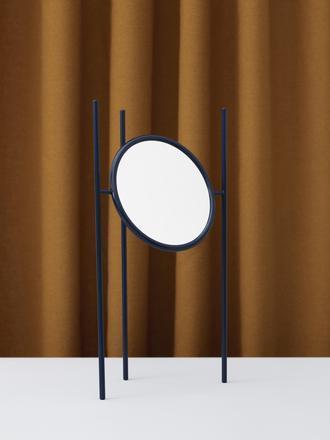 Andreas Bergsaker fra Stavanger tar med «Aase» til Milano denne uken. Dette er et dobbeltsidig sminkespeil som balanserer på tre iøynefallende stålbein.
