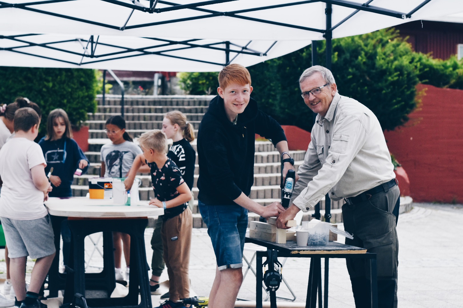 POPULÆR TEST. Publikum strømmet til da Webstep og samarbeidspartnere testet ut konseptet sitt i Lunds kommunesentrum. På bildet f.v. barnebarn Aksel Kro-Halvorsen og bestefar Ståle Kro. Foto: Webstep