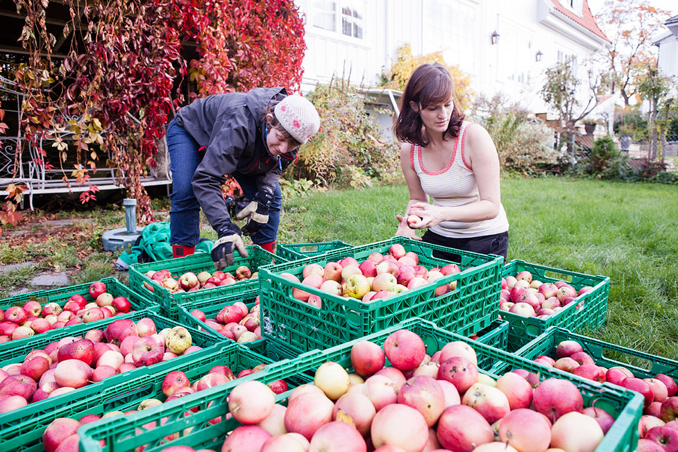 BÆREKRAFTIG LÅN. Cultura Bank har nylig gitt lån til bedriften Epleslang. Epleslang drives av sosiale entreprenører som ansetter mennesker med fysiske, psykiske eller sosiale utfordringer til å høste byens eplehager og produsere prisbelønt eplemost. Foto: Cultura Bank