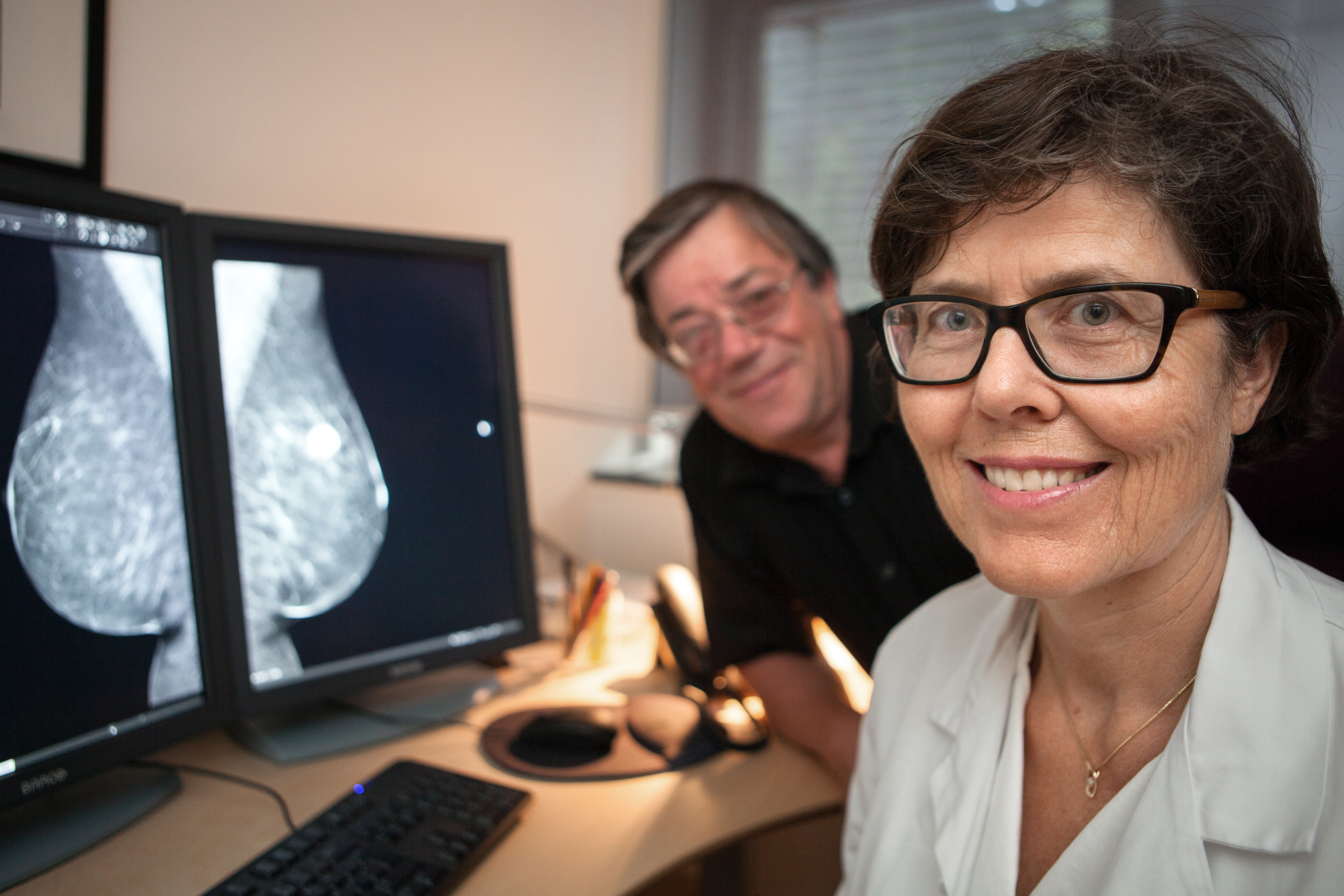 – Vi har oppnådd rask og forsvarlig håndtering av henvisningene, sier Marit Muri Holmen, overlege og leder for enhet for brystdiagnostikk ved Oslo universitetssykehus. Her sammen med Skule Storheill, innovasjonsdirektør i Norsk design- og arkitektursenter. Foto: Johnny Syversen